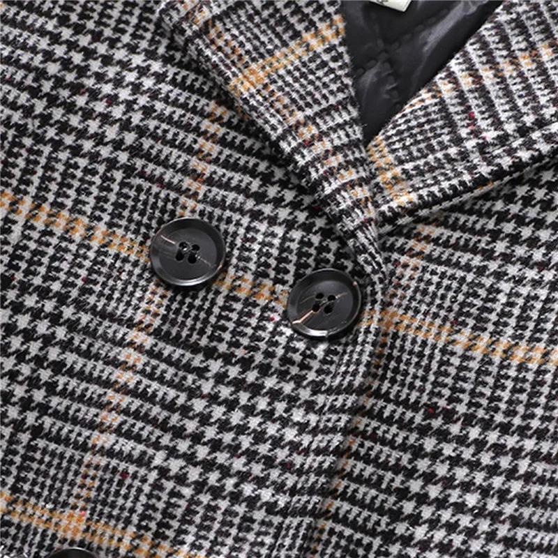 Двубортная клетчатая куртка для мальчиков удобна в носке, декорирована карманами, красивая и долговечная.