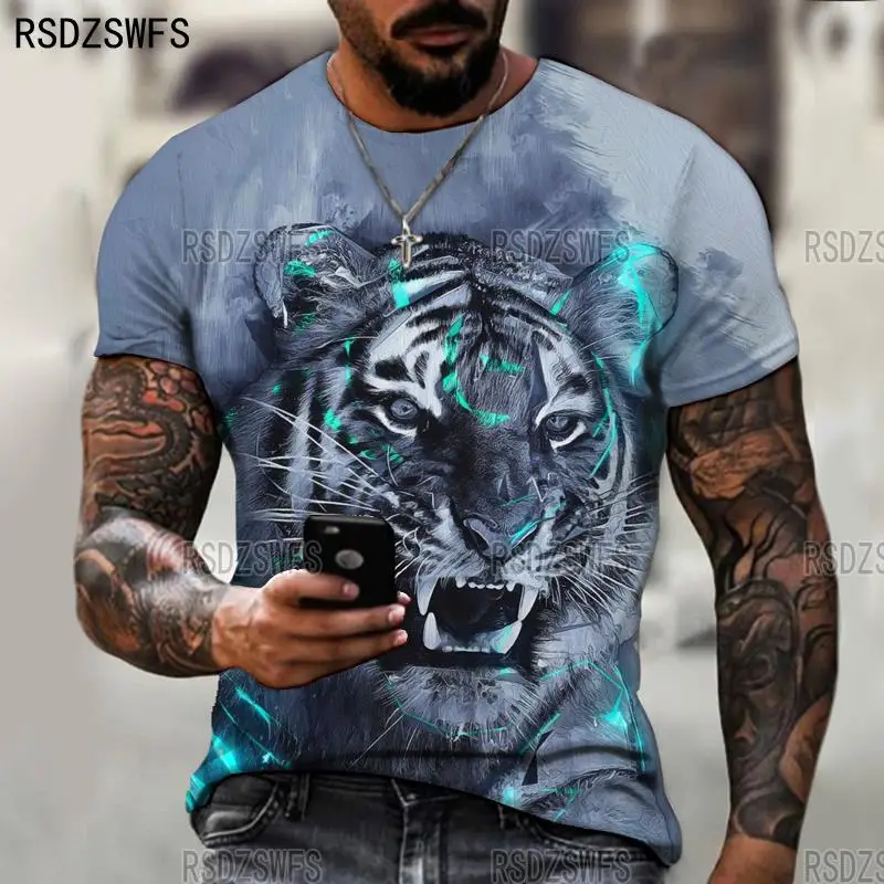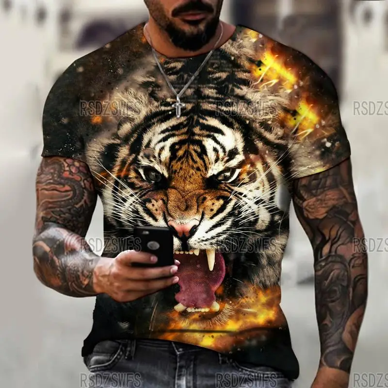 Футболка мужская оверсайз с 3D-принтом, круглым вырезом и коротким рукавом