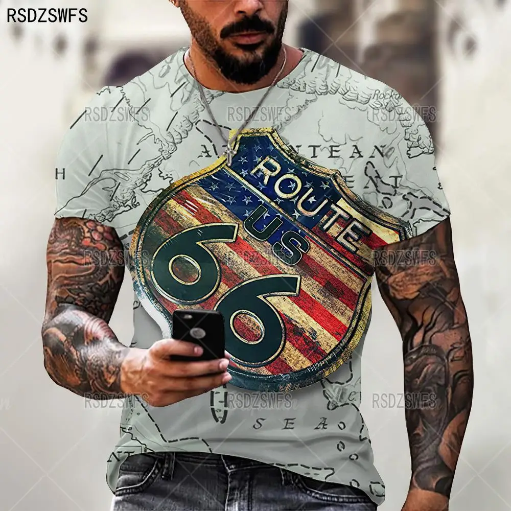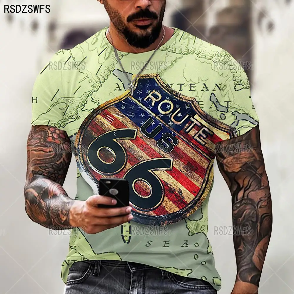 Мужская футболка с коротким рукавом, модная футболка rote 66 с мото...