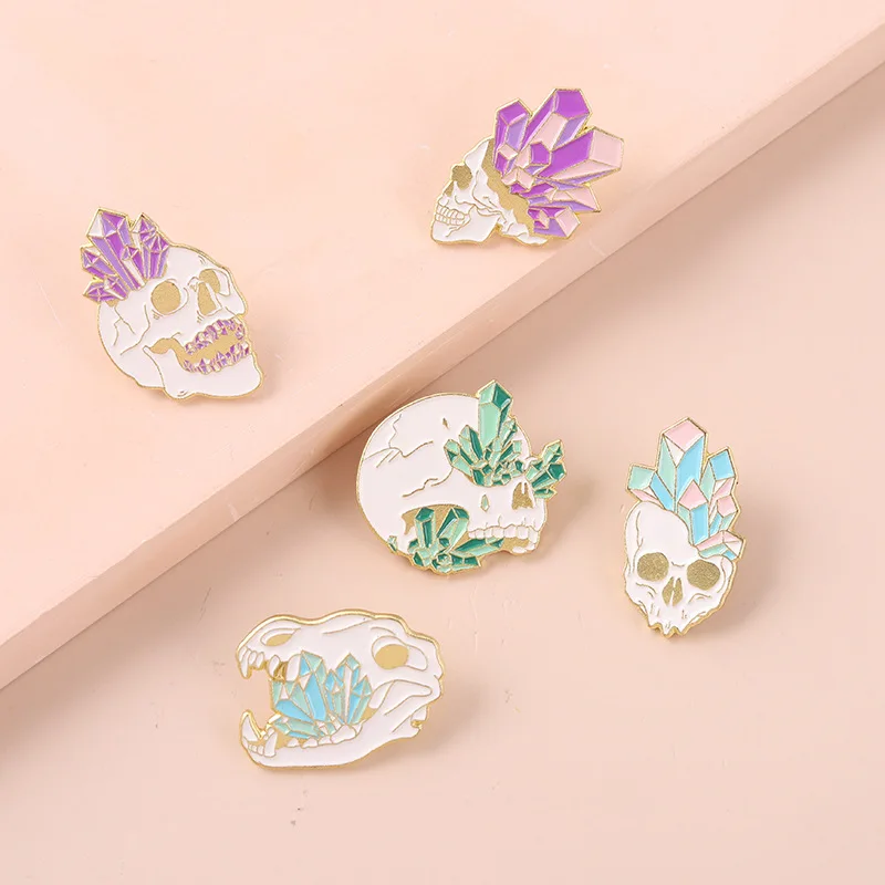 Брошь в стиле панк, цветная креативная форма черепа для женщин, ошейник, украшение для женской сумки