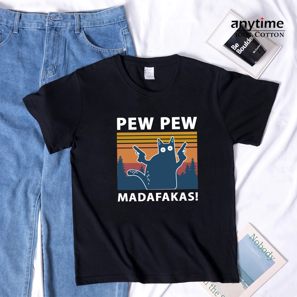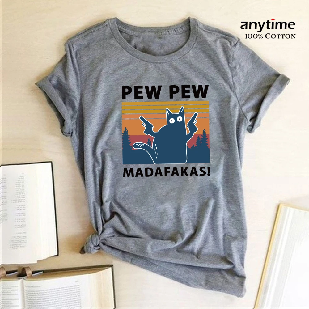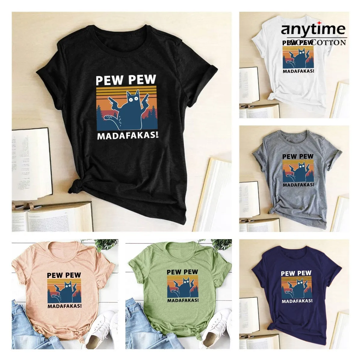 Лучшие Хлопковые футболки с принтом Pew Madafakas, женские летние смешные футболки 2022 с графическим принтом для женщин, свободные топы в стиле Харадзюку с круглым вырезом