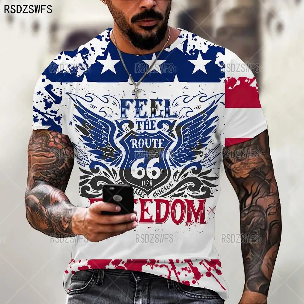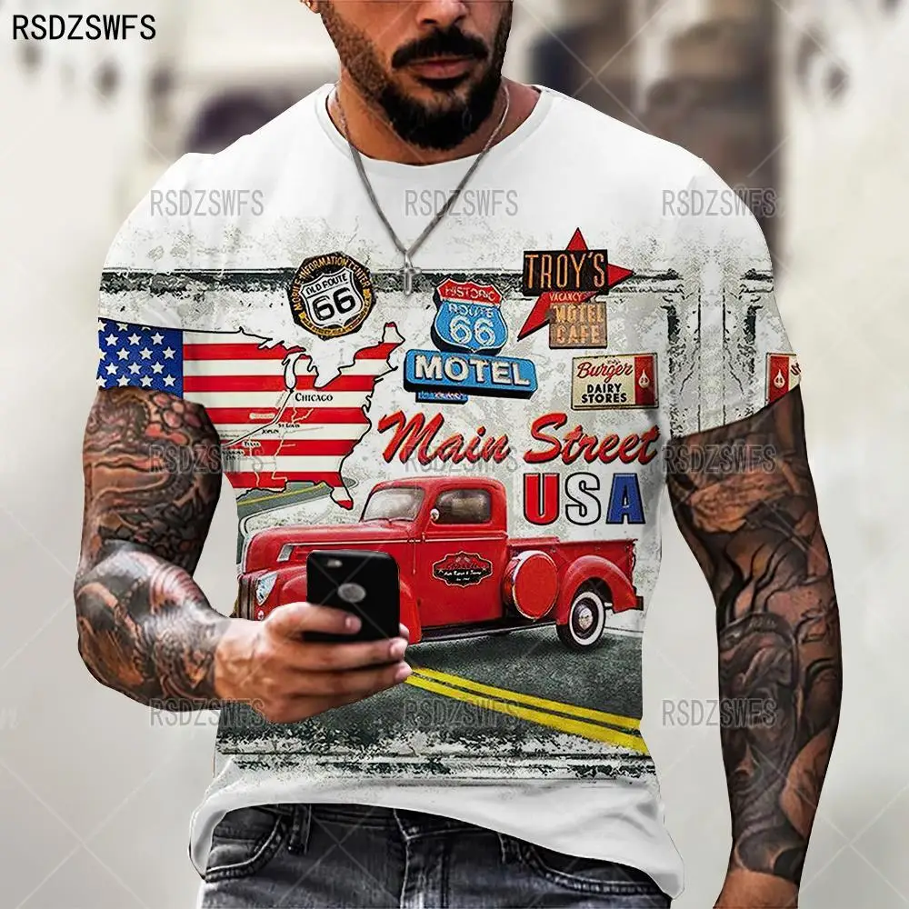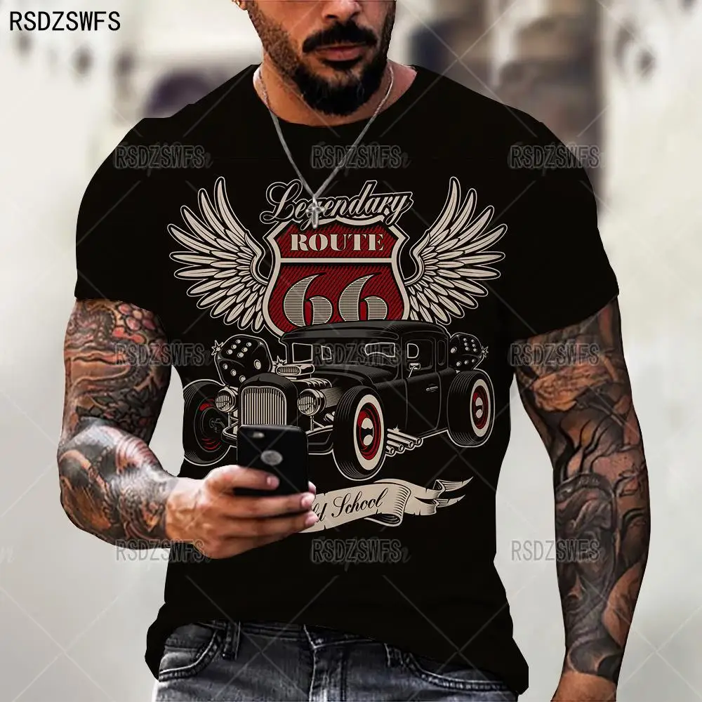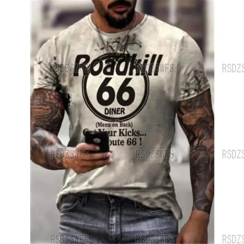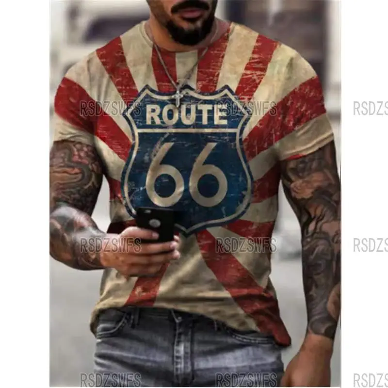 Футболка 66 US Highway 3D, Летний Новый Стиль, впитывающий пот и дышащий топ с короткими рукавами, футболка с круглым вырезом, мужские рубашки большого размера