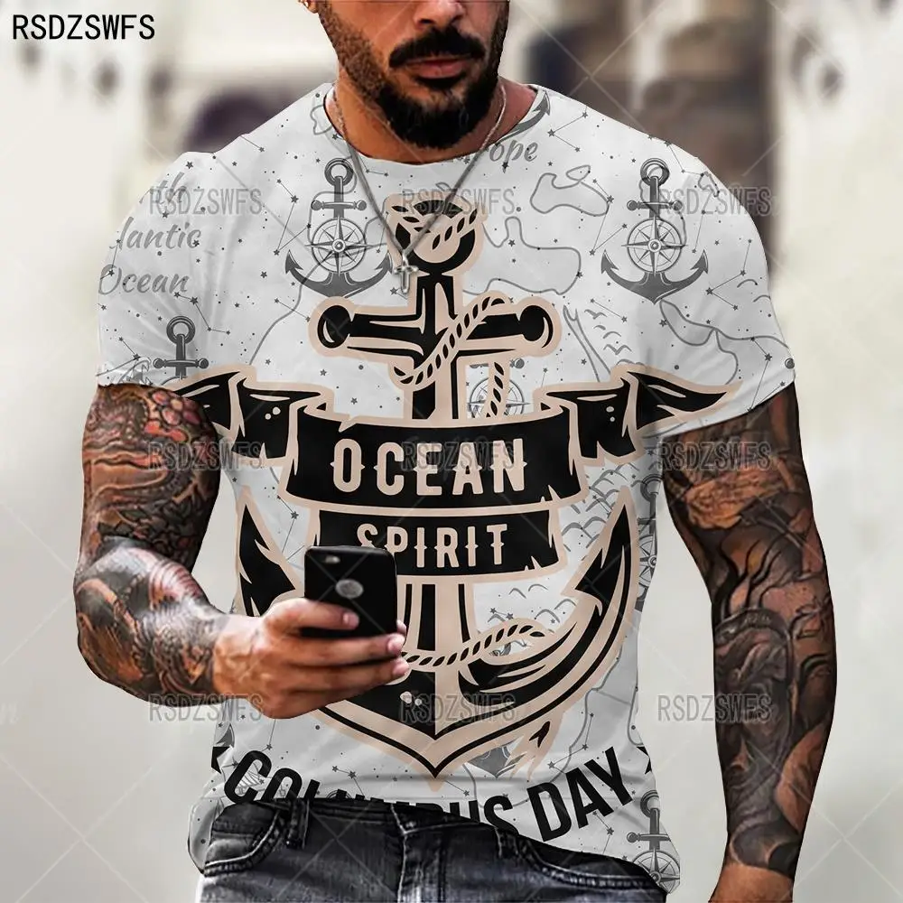 Футболка мужская оверсайз с 3D-принтом якоря, модная Повседневная р...