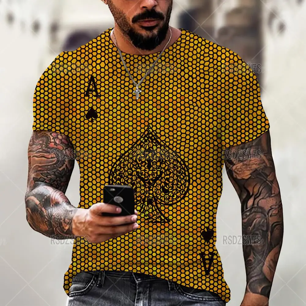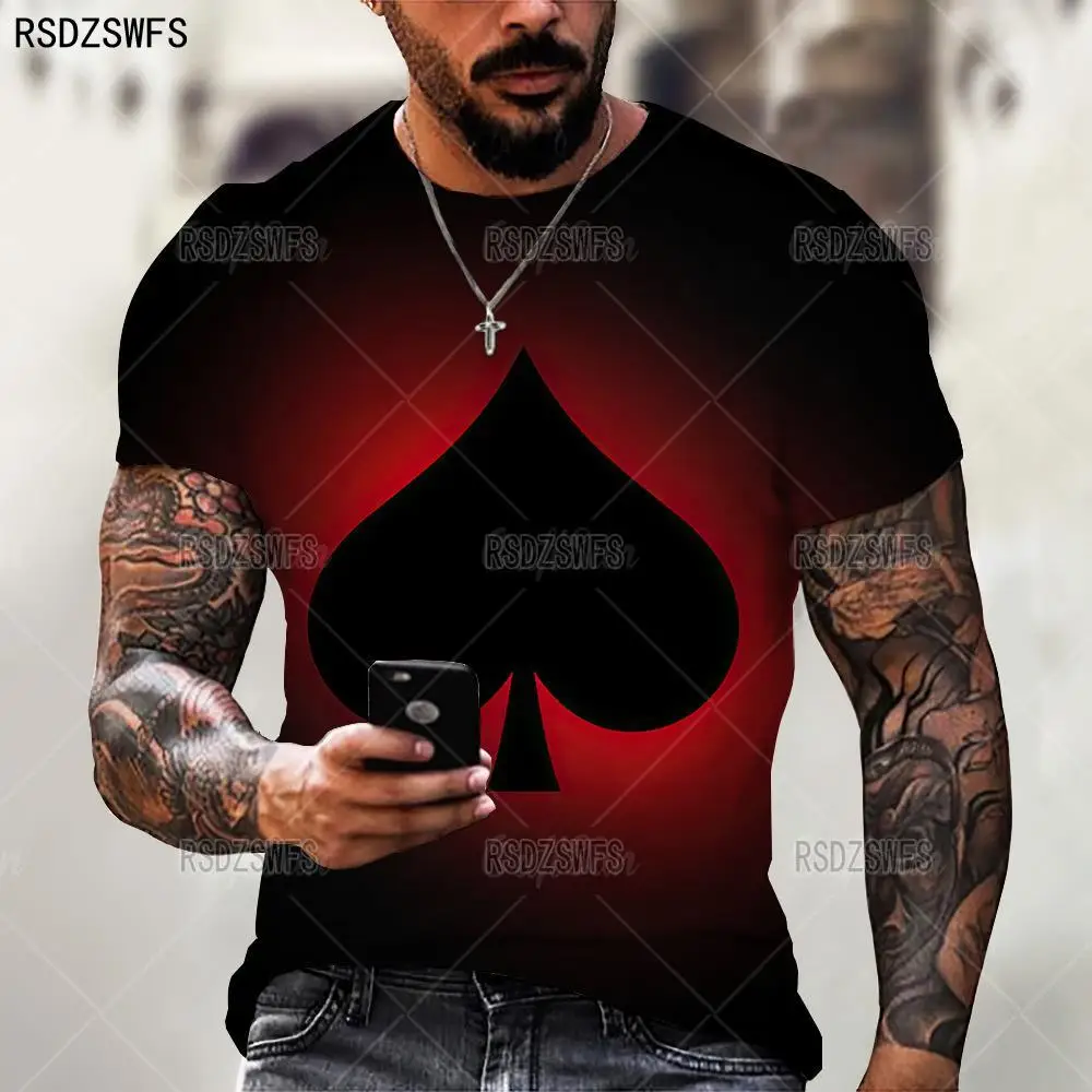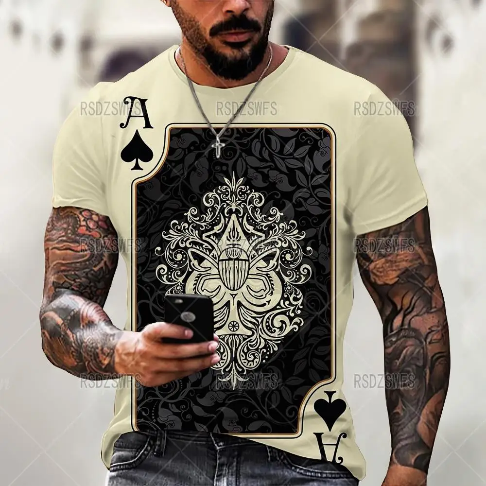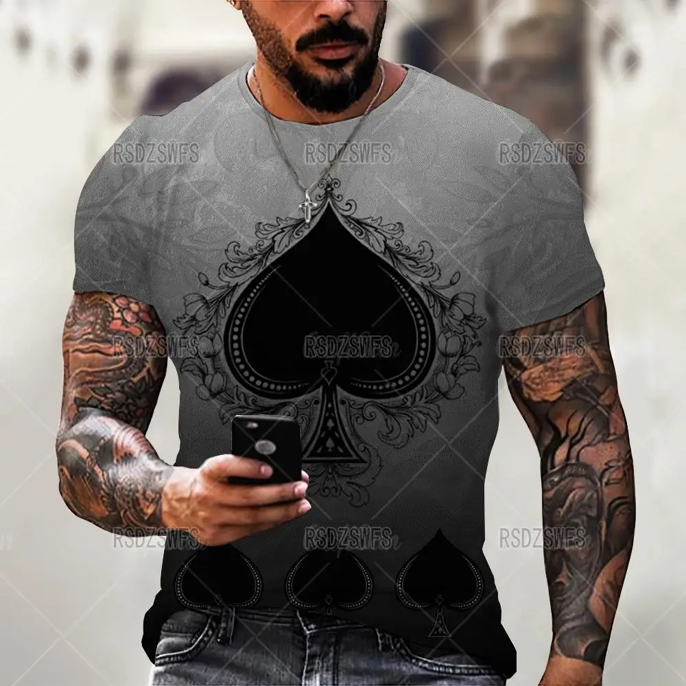 Футболка мужская оверсайз с принтом игральных карт, модная тенниска из полиэстера с 3D игральными картами, модная уличная одежда, топ на лето