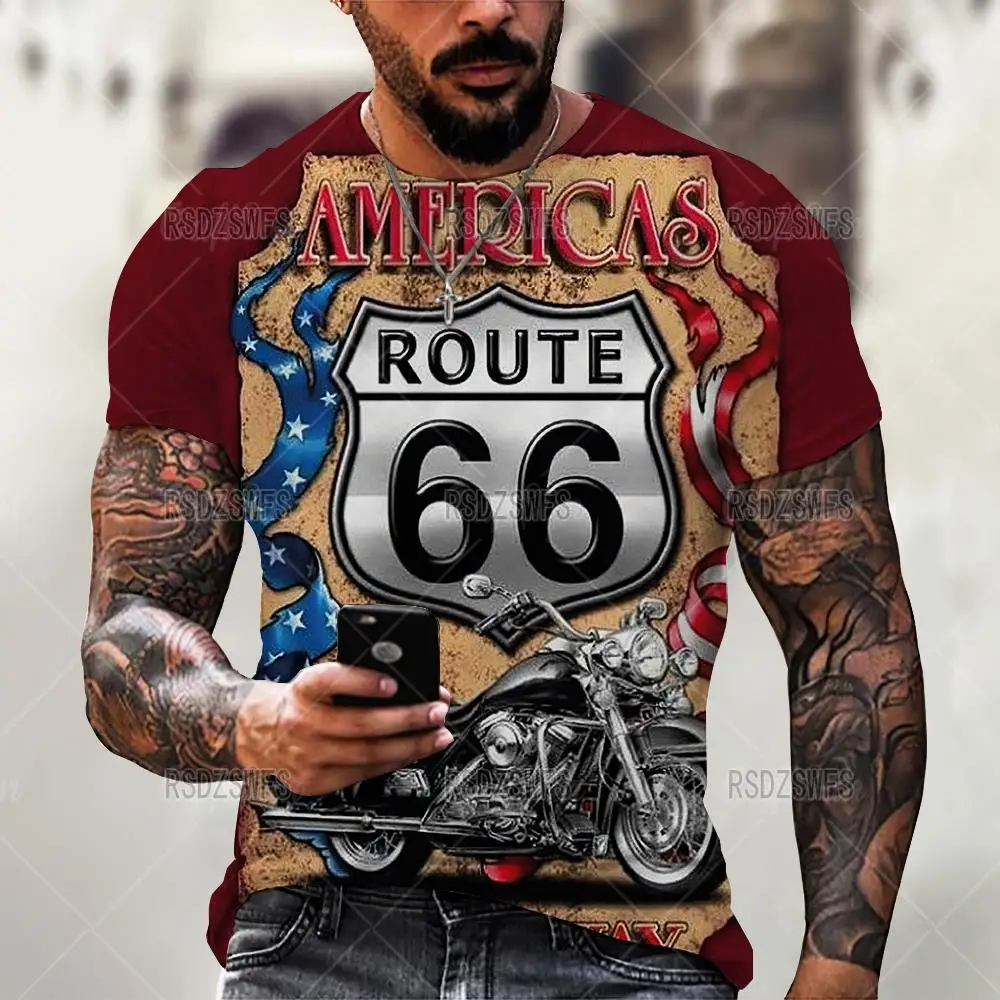Футболка с 3D-принтом в европейском и американском стиле Highway 66...