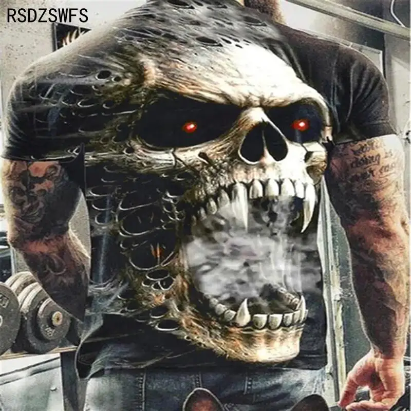 Футболка мужская с 3D-принтом черепа, модная летняя Повседневная дышащая рубашка оверсайз, с круглым вырезом и коротким рукавом