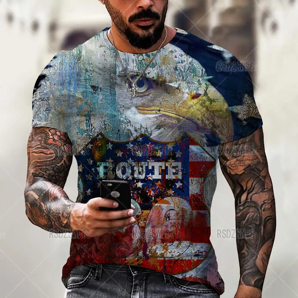 Футболка мужская оверсайз с круглым вырезом, модная тенниска с короткими рукавами, Винтажная Майка, Route 66 America Highway, лето