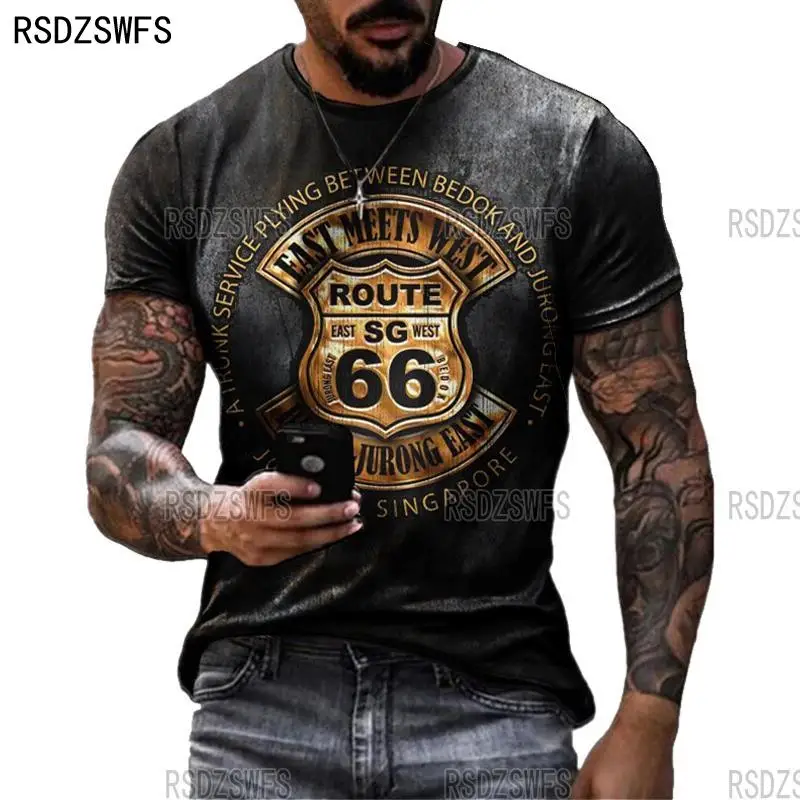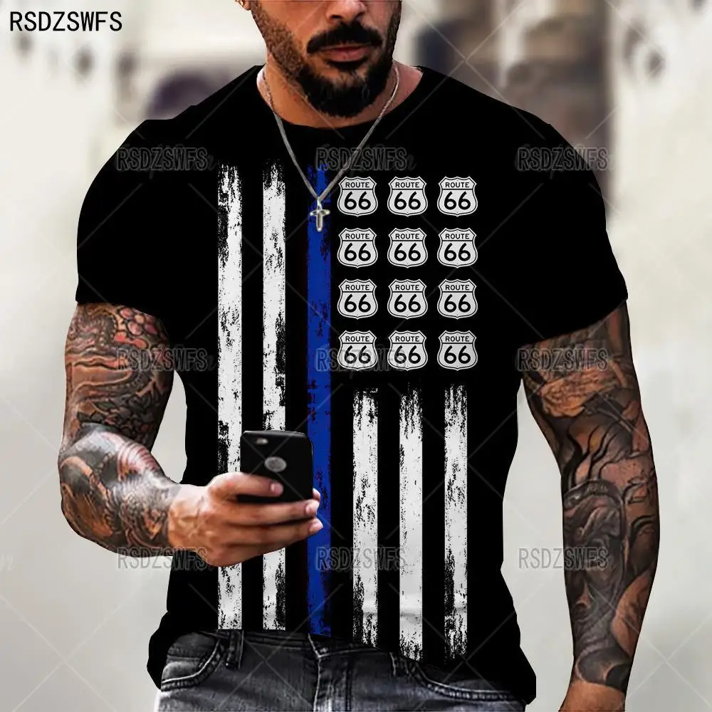 Футболка 66 US Highway 3D, Летний Новый Стиль, впитывающий пот и ды...