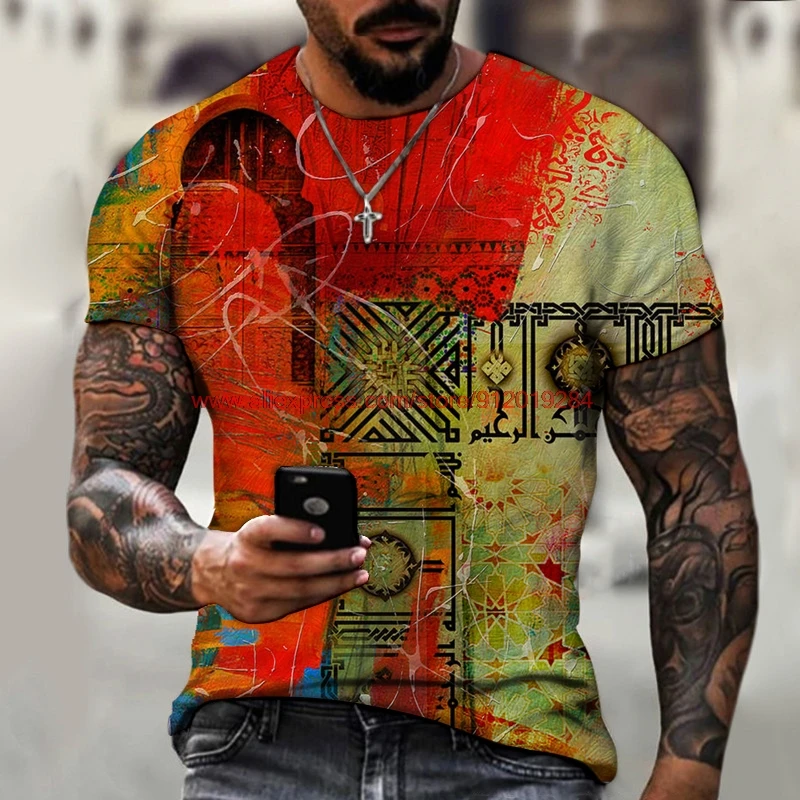 Мужская летняя спортивная футболка оверсайз в стиле ретро, с изобра...