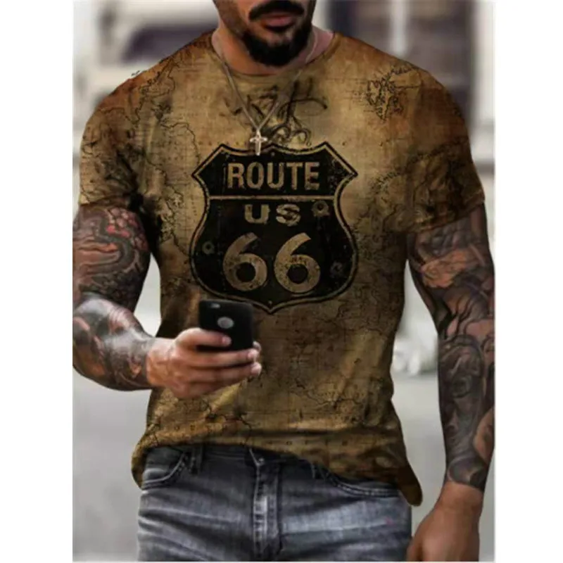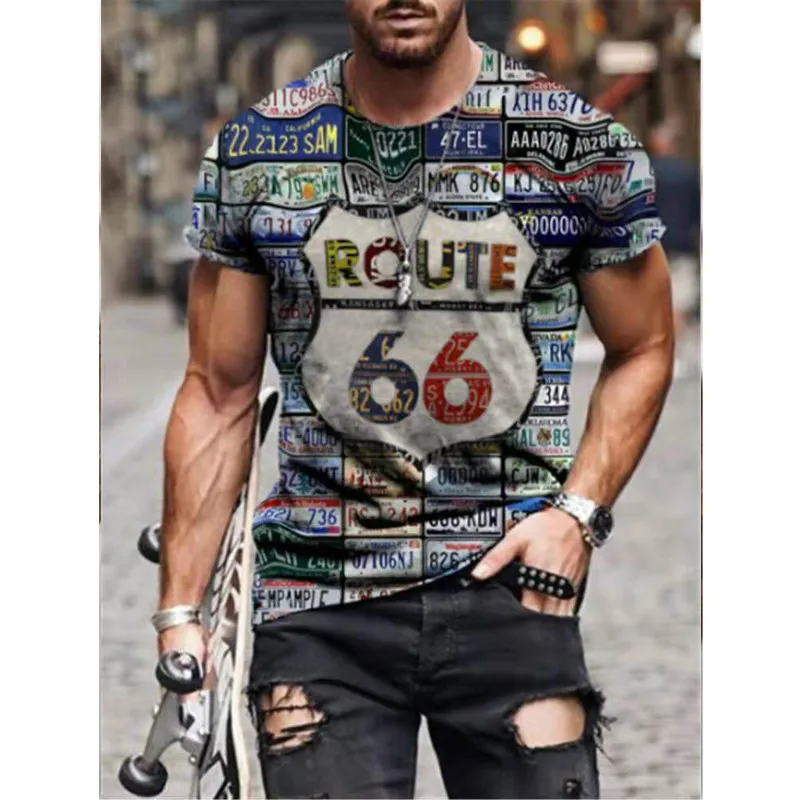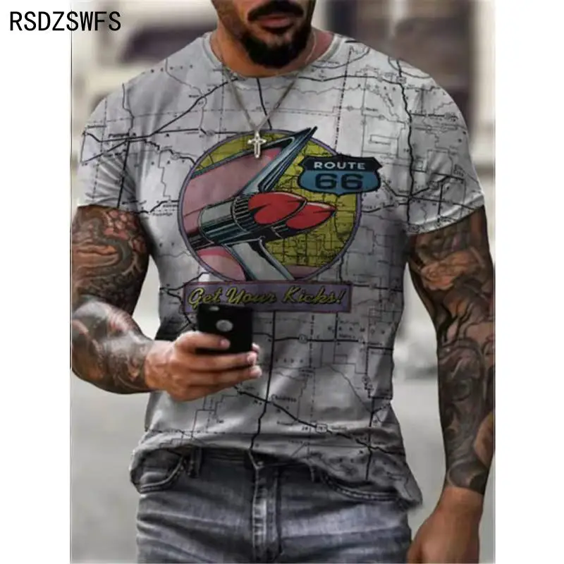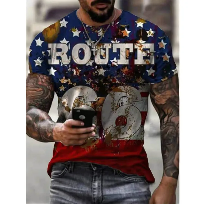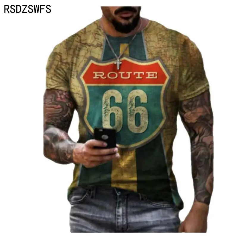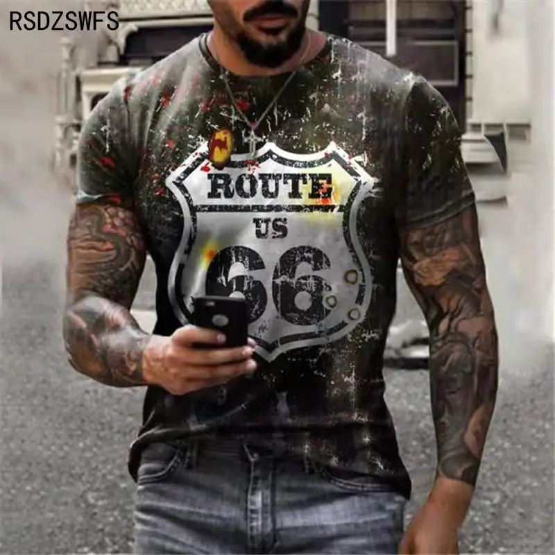 Летняя мужская футболка, уличная мода, США шоссе 66, индивидуальная 3D-печать, одежда; Мужской Топ большого размера, Свободный пуловер, футболка