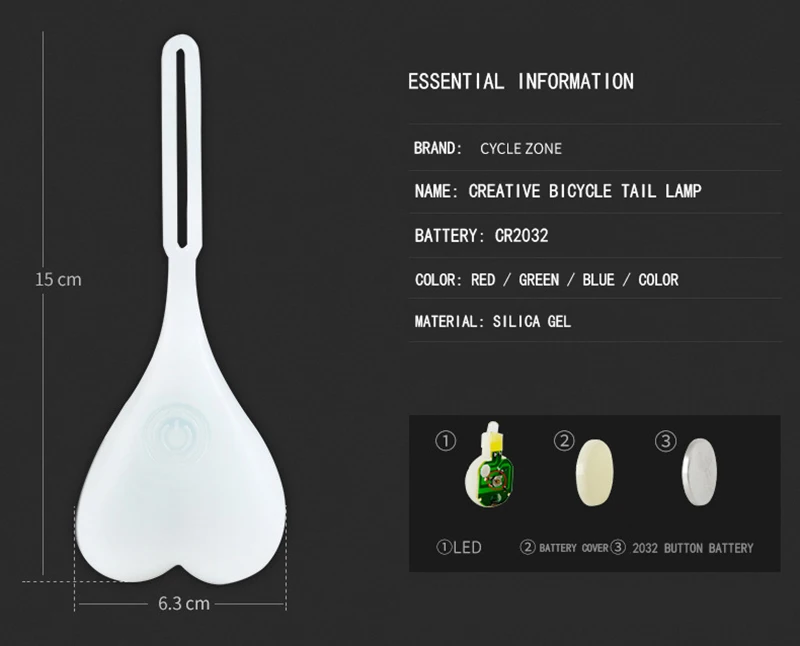 Фонарь велосипедный в форме сердца, водонепроницаемый силиконовый з...