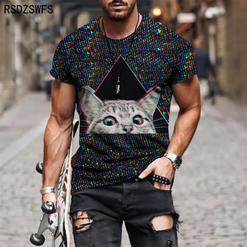 Футболка мужская с 3d принтом, Повседневная футболка с милым котиком и животным, спортивный топ для молодых людей