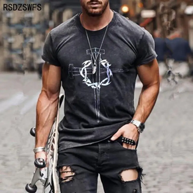 Мужская летняя футболка с 3D-принтом компаса, футболка большого размера в стиле хип-хоп, одежда с короткими рукавами в стиле ретро