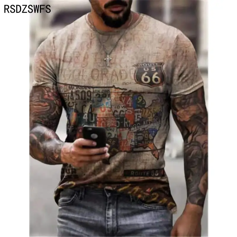 66 футболка American Road, Новинка лета, футболка с коротким рукавом, топ с круглым вырезом, Мужская футболка оверсайз, ретро одежда, alt