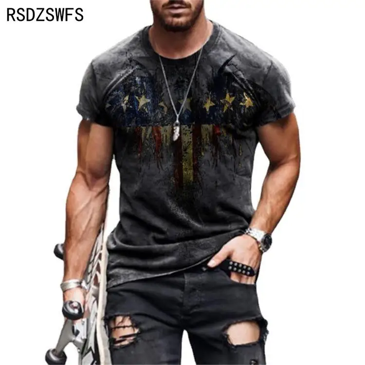 Футболка мужская с круглым вырезом, модная Повседневная рубашка с цветным 3D-принтом, с короткими рукавами, в стиле кэжуал, лето 2021