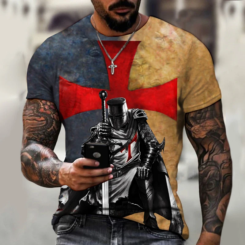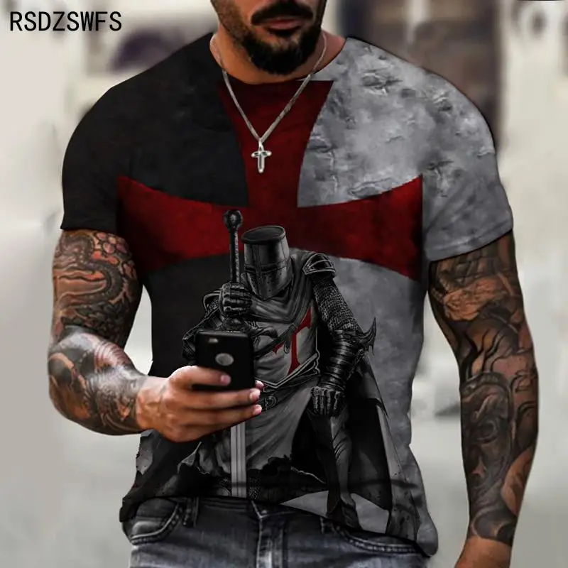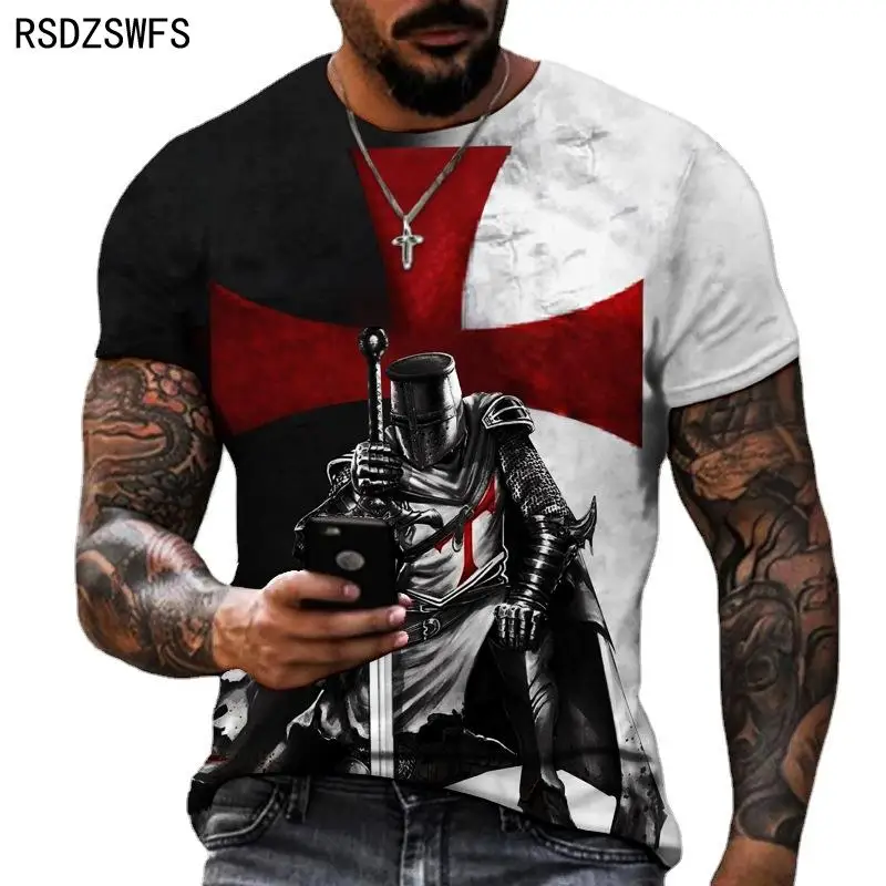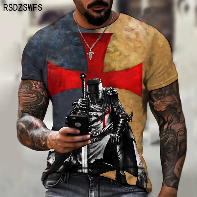 Футболка мужская с 3D принтом, с рисунком самурая, рыцари, темплар, стиль ретро, европейские, американские уличные, короткий рукав