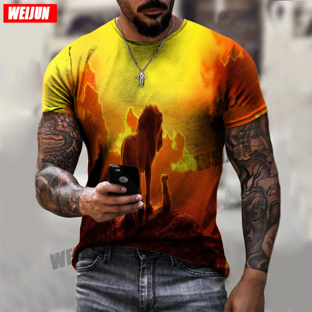 Футболка мужская с 3D-принтом, повседневная тенниска с круглым вырезом, с коротким рукавом, с леопардовым принтом, изображением Льва, уличная мода, лето