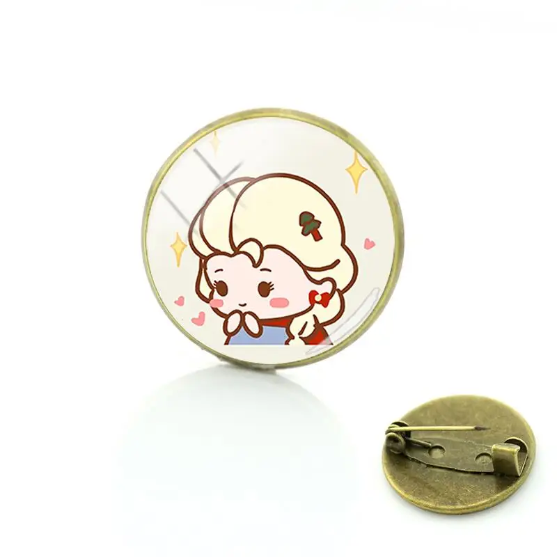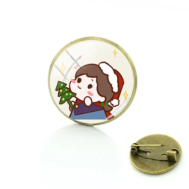 Дисней Рождество одевание принцесса Винтажная брошь круглый стеклянный значок трендовые рождественские подарки для женщин девушки булавки ювелирные изделия FWN567Изображения продуктов:
