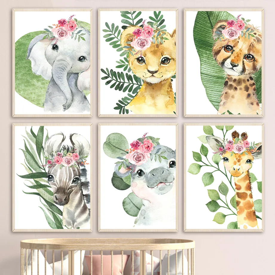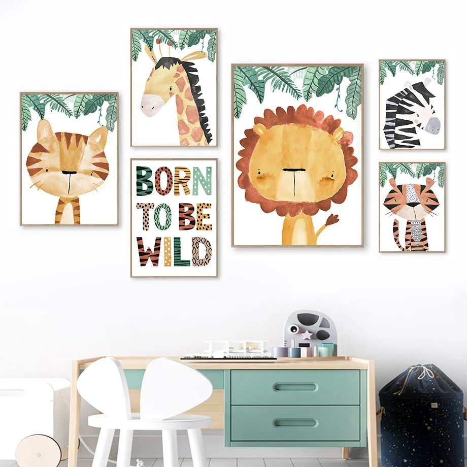 Джунгли диких животных Лев слон жираф питомник скандинавские плакат...