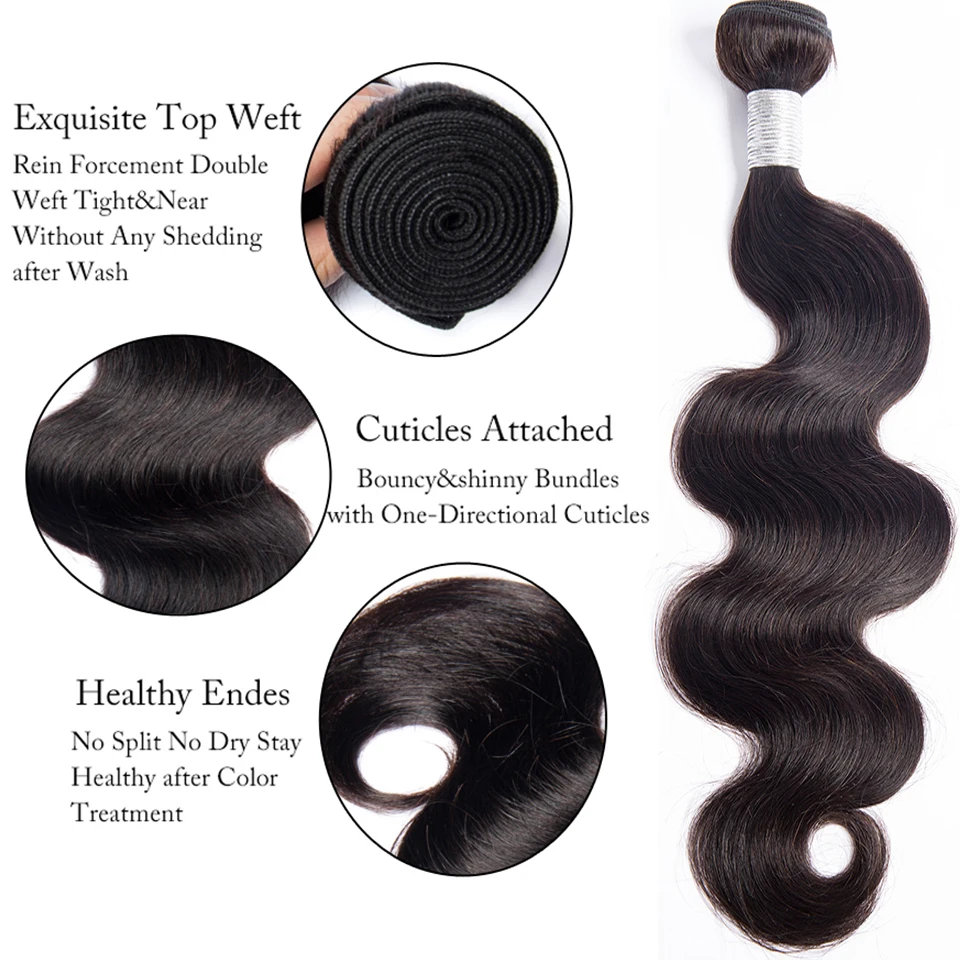 Lemoda Hair3 Bundles with Frontal Closure Human Hair