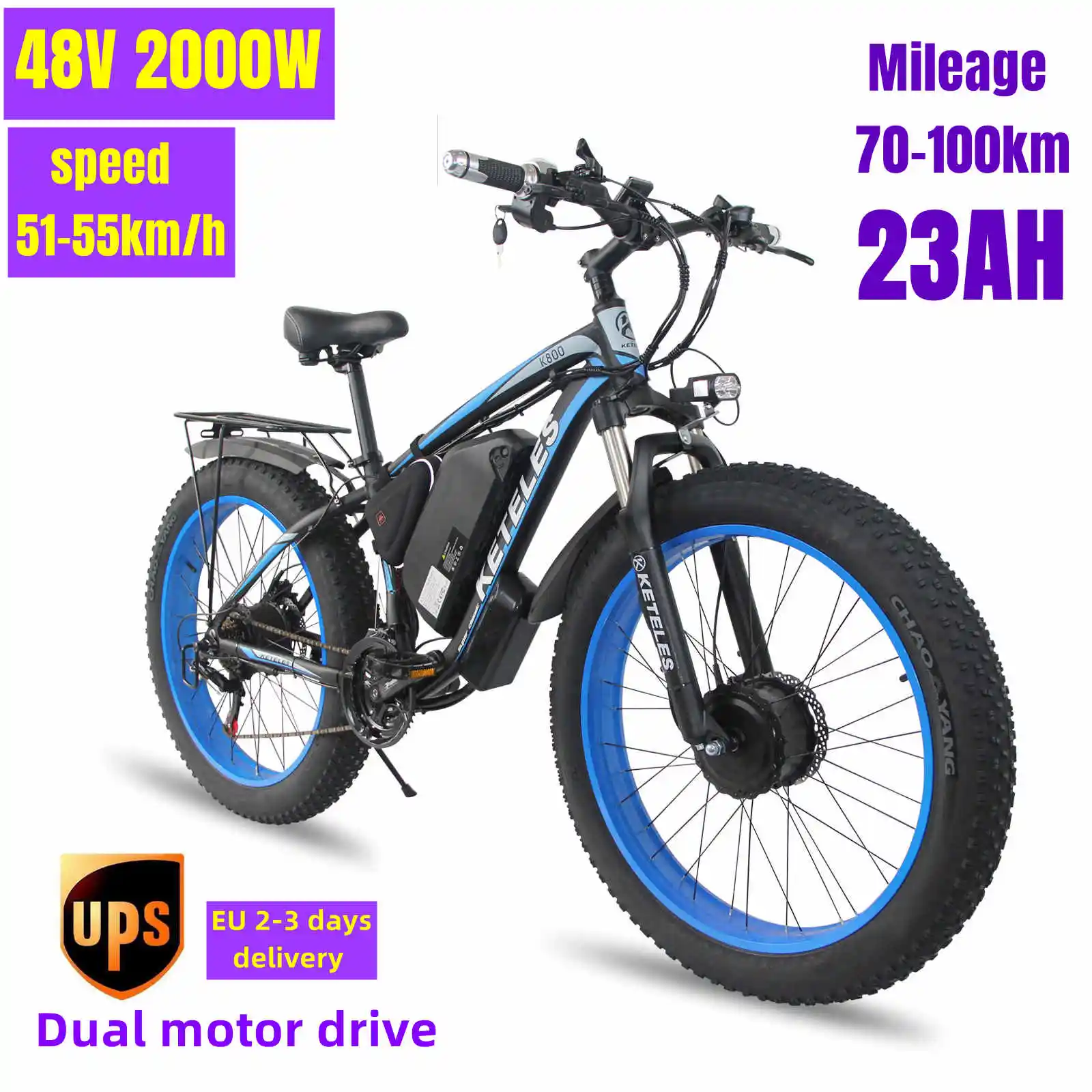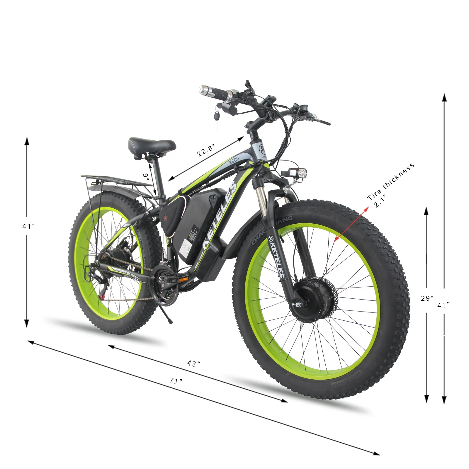 26-дюймовый электрический велосипед с 4,0 шинами 48V2000W двойной привод передний и задний мотор электрический снегоход ATV с 23AH Samsung литиевый