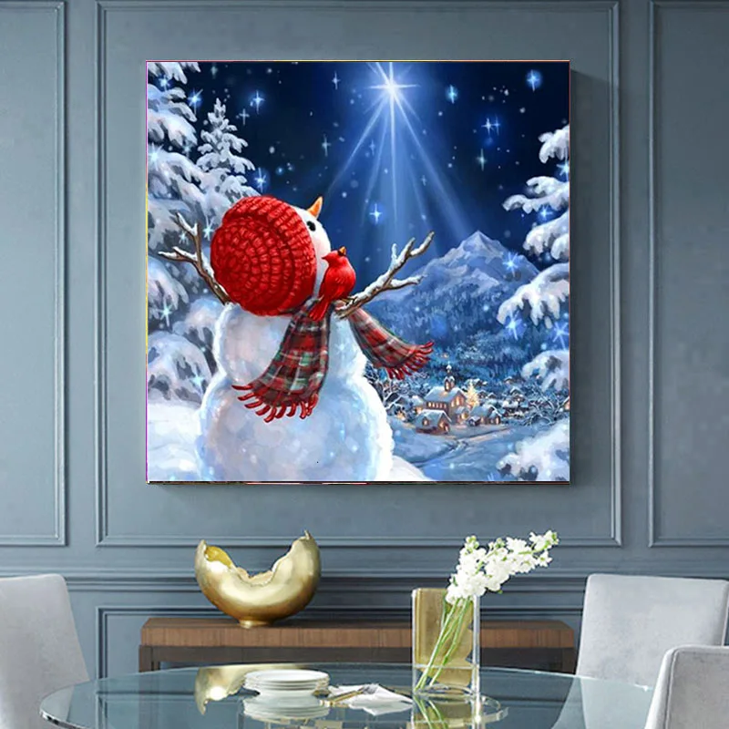 Алмазная живопись Снеговик Стразы 5D DIY Алмазная вышивка Пейзаж Вы...