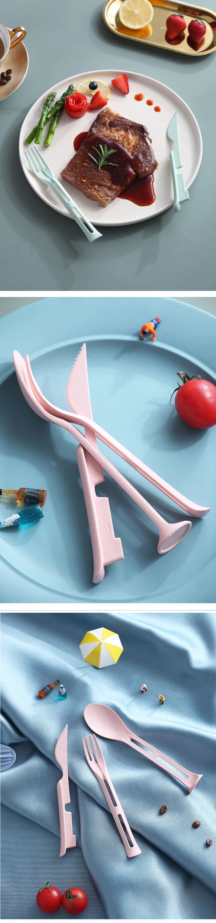 3 шт.набор, портативные столовые приборы из пшеничной соломы