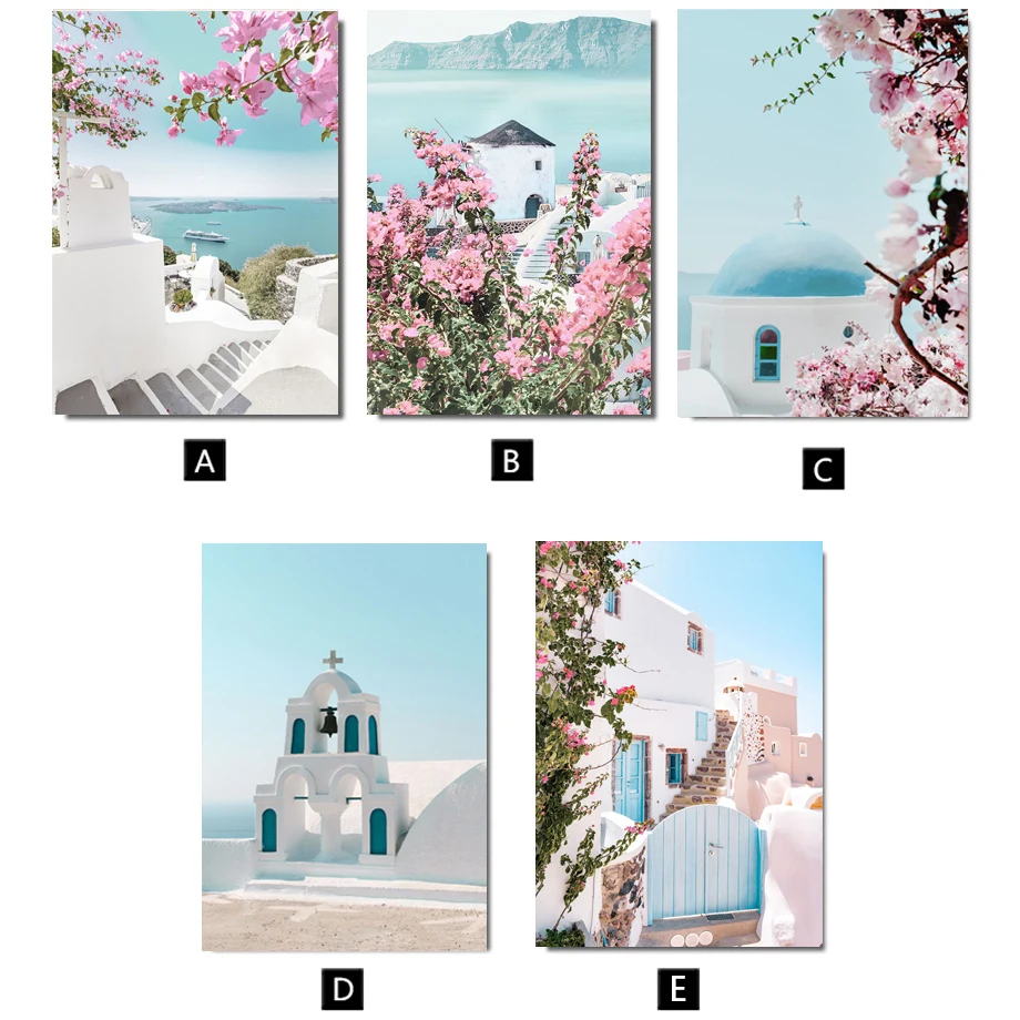 Весна санторини, приморский город, северный настенный художественный холст, постеры и принты, картины для декора гостиной