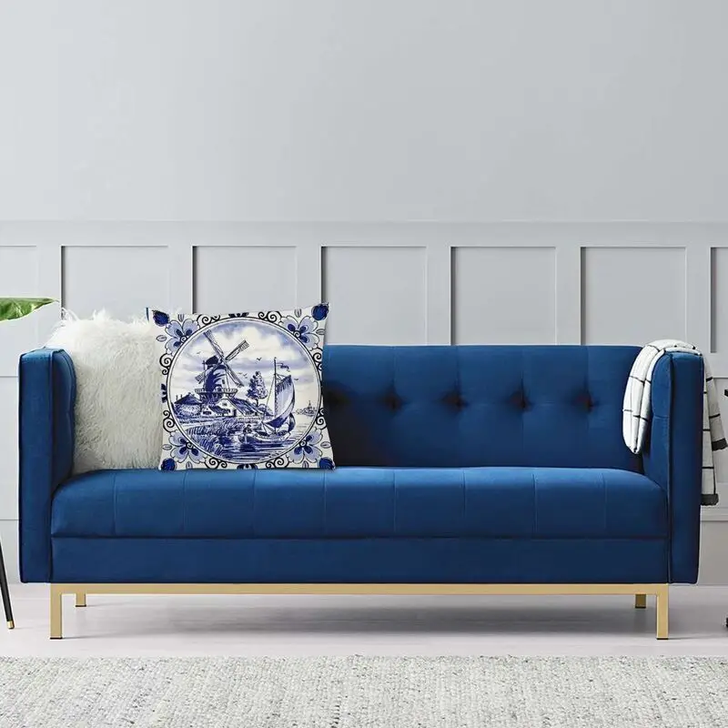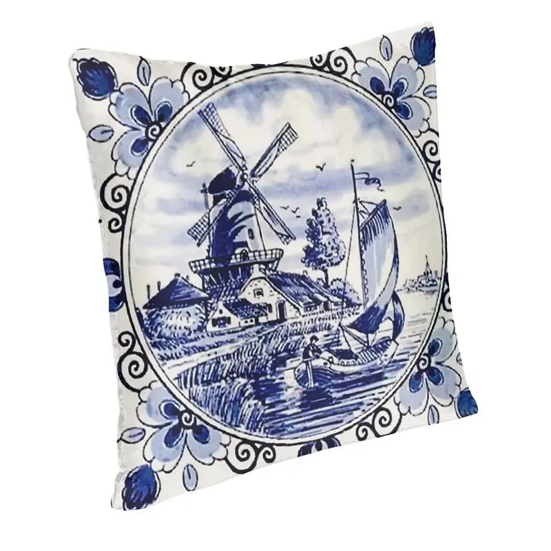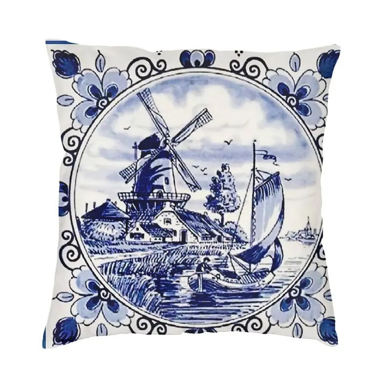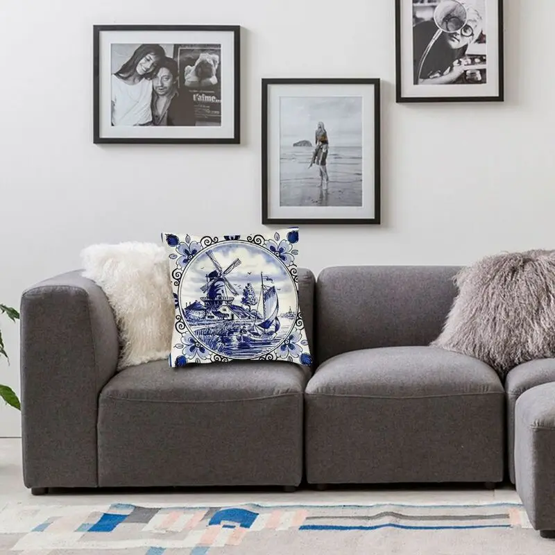 Винтажный постер в скандинавском стиле с изображением ветряной мельницы в голландском синем стиле, наволочки 40x4 0 см для дивана, квадратная наволочка