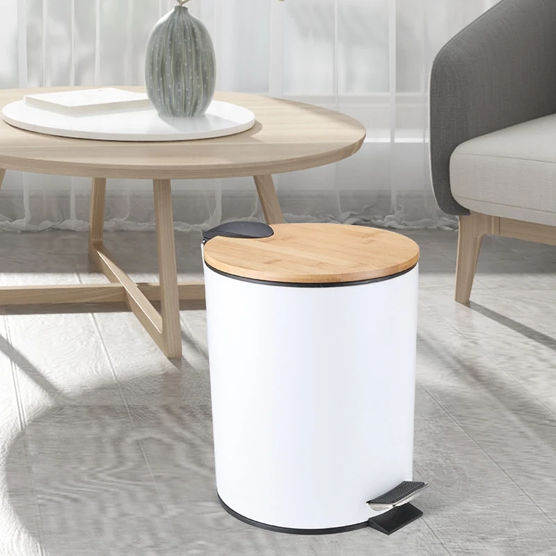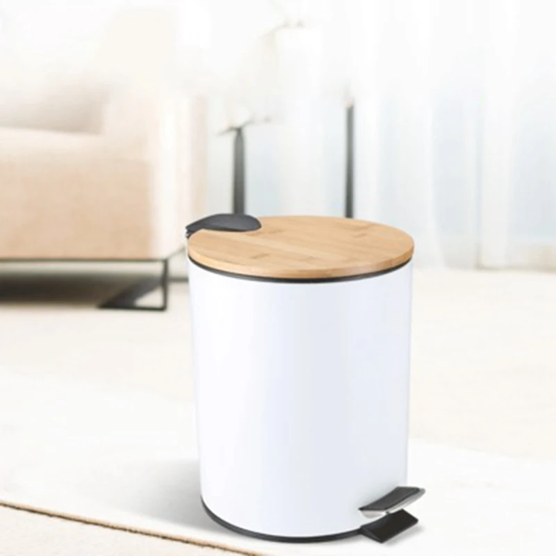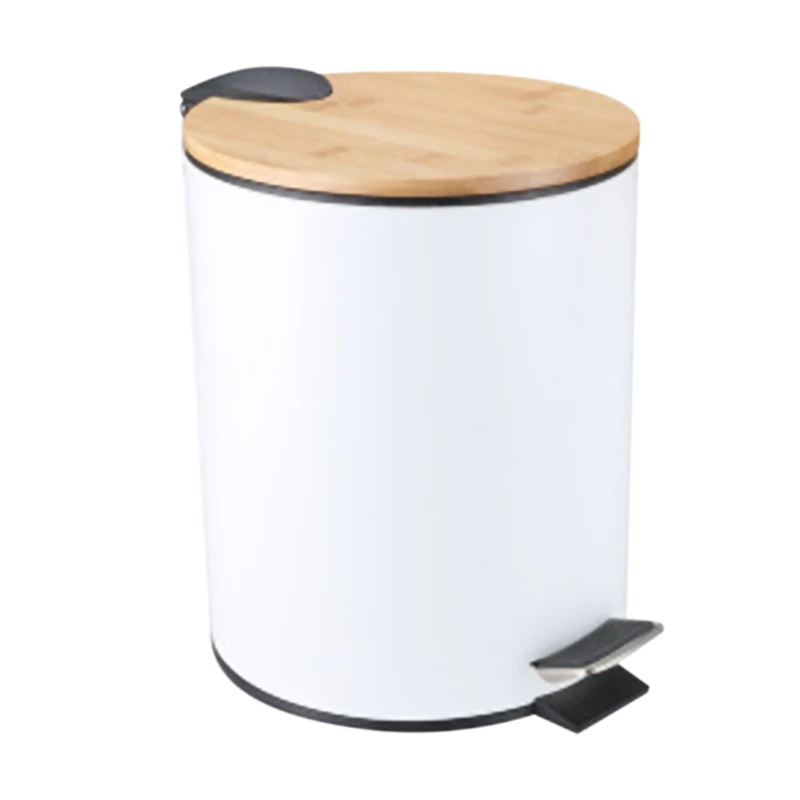 Акция! Мусорное ведро из нержавеющей стали с бамбуковой крышкой 3л, пошаговый мусорный контейнер, мусорное ведро для кухни, ванной комнаты, спальни, белого цвета