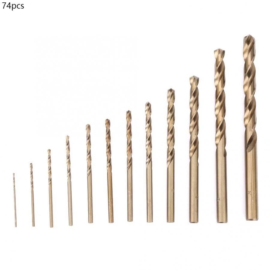 Спиральные сверла из быстрорежущей стали высокой прочности, кобальтовые биты, полностью заземляющие металлические насадки, 74 шт.компл. 1-8 мм