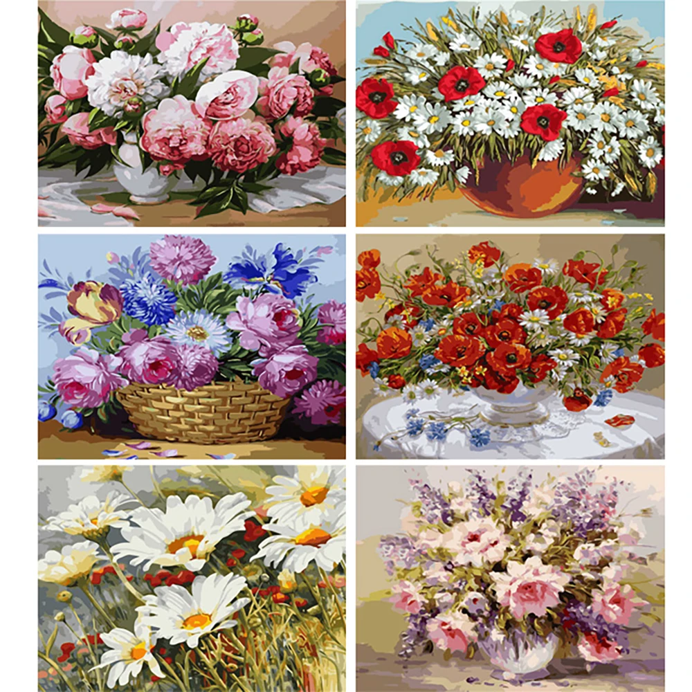 Искусственная роспись по номерам, цветы 40x50 см для взрослых, иску...