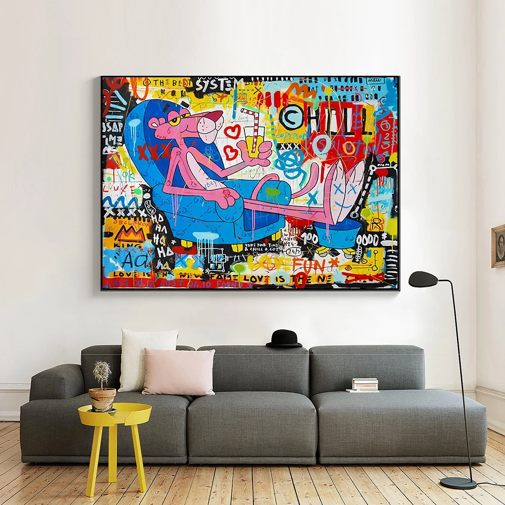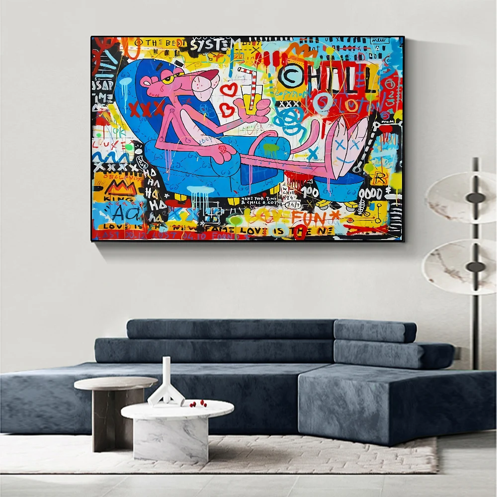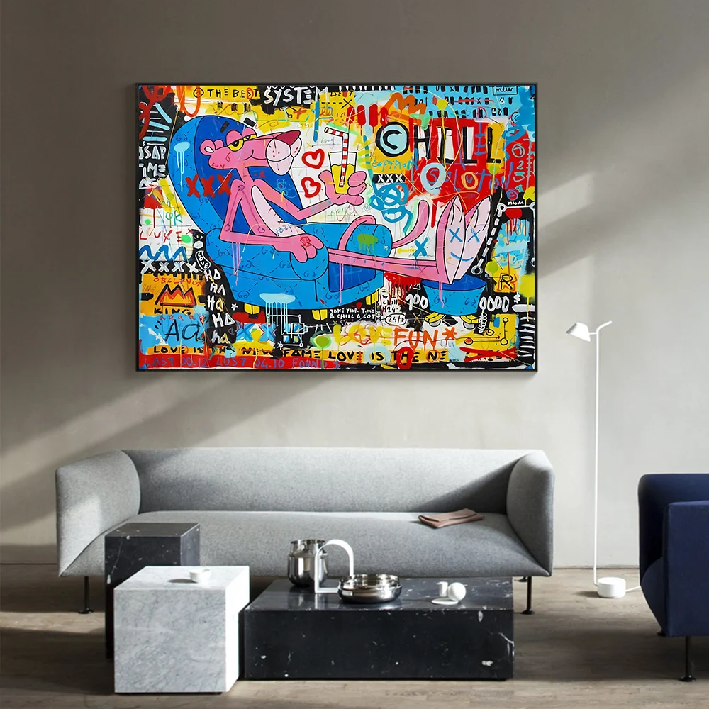 Картины на холсте с граффити, домашний декор, Мультяшные картины, Постер HD с изображением розовой Пантеры, модульное настенное искусство для гостиной без рамки