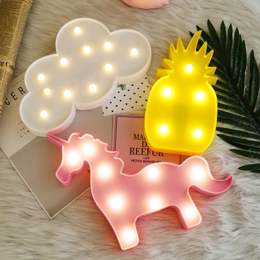 Светодиодный ночник с фламинго, единорогом, светодиодная лампа, подвесной светильник, ананас, кактус, звезда, светильник для стены, украшение для спальни