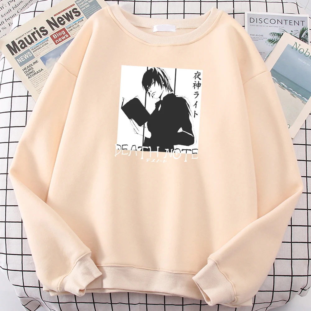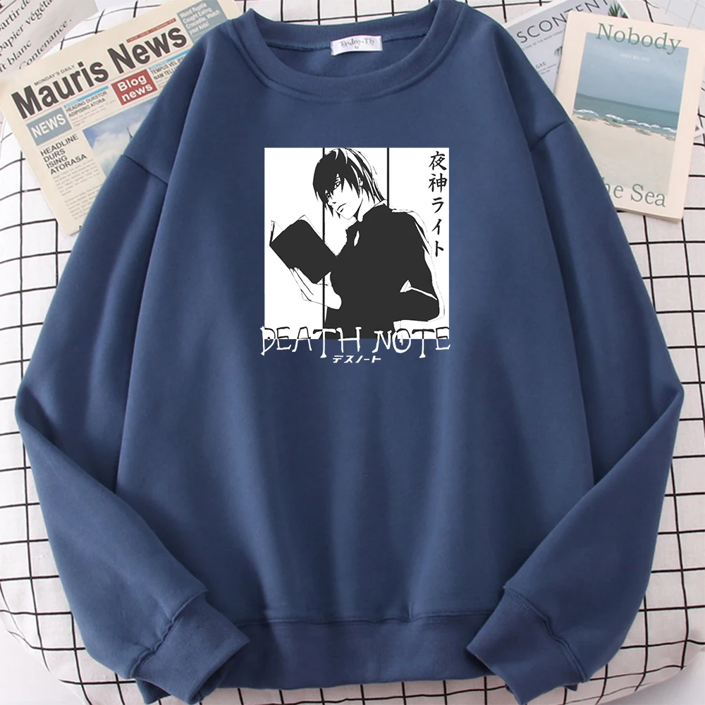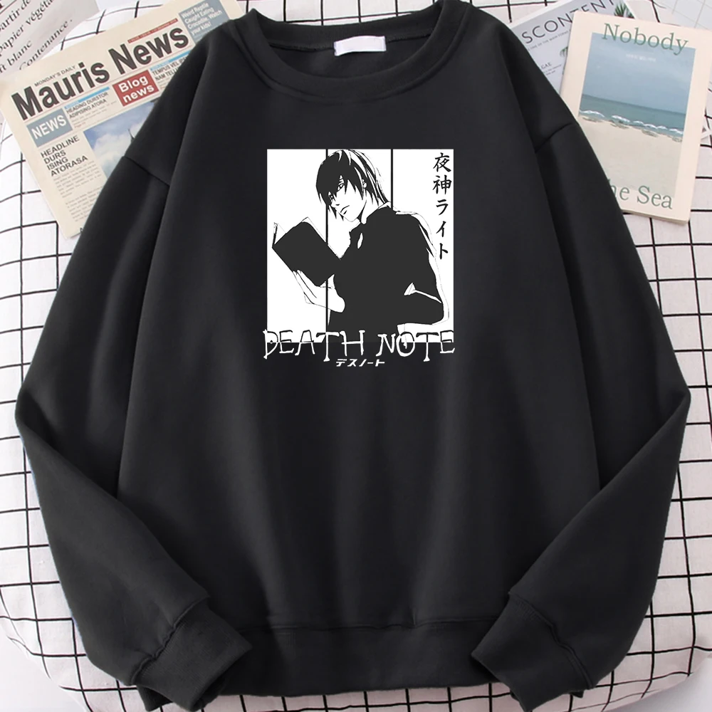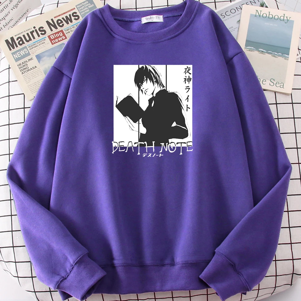 Мужские свитшоты аниме Death Note Yagami светильник принт с длинными рукавами мужской спортивный размера плюс теплый флисовый женский свитер с круглым вырезом