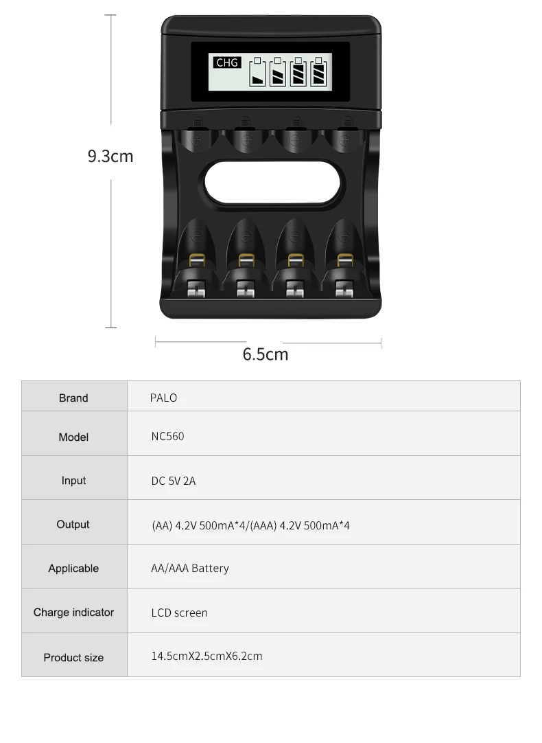 Умное зарядное устройство PALO, 1,5 в, AA, 1,5 МВтч, для литий-ионных аккумуляторов