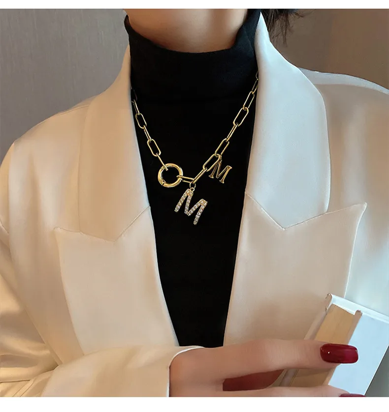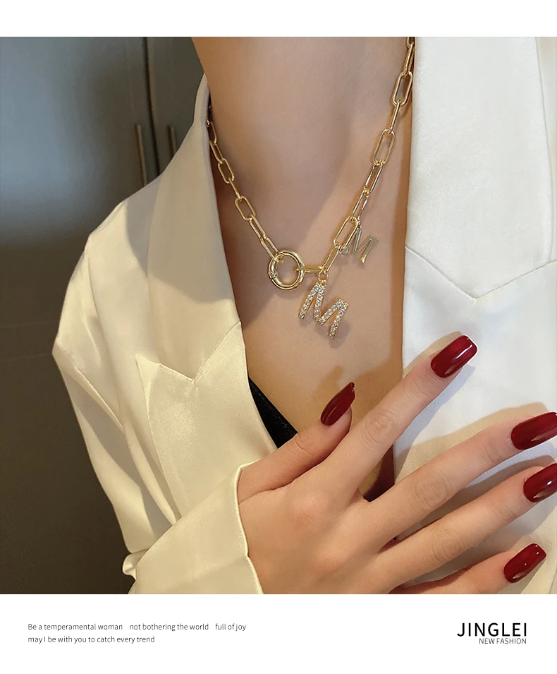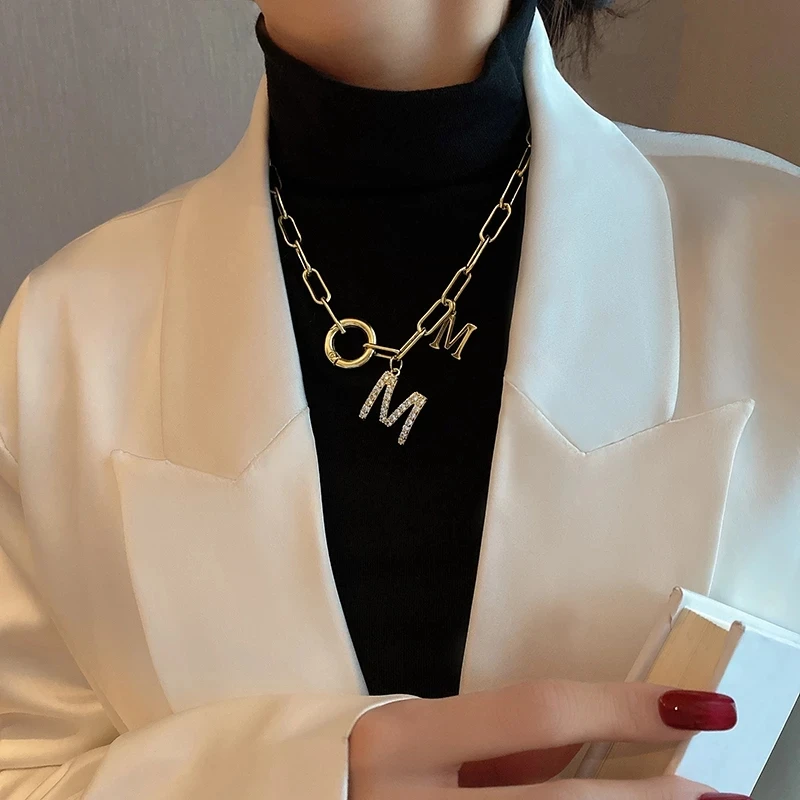 Женская короткая цепь в стиле панк, толстая короткая цепь в стиле хип-хоп с буквой M, корейская бижутерия, подвеска на шею, 2021