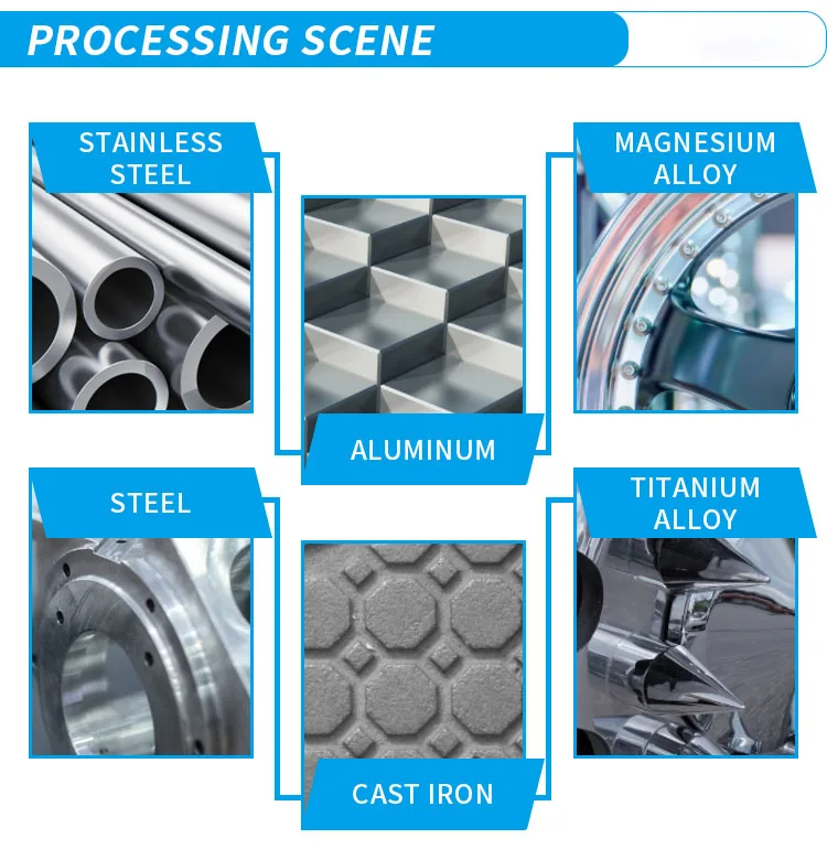 Применимые материалы обработки: углеродистая сталь, чугун, литая сталь, легированная сталь, инструментальная сталь, нержавеющая сталь и т. д.