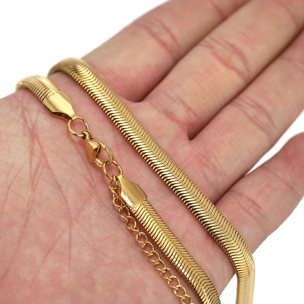 1 шт., нержавеющая сталь, 6 мм, плоская цепочка в виде змеи, ожерелье в елочку, Чокеры для женщин, 18 дюймов, с 5 см удлиненной цепочкой