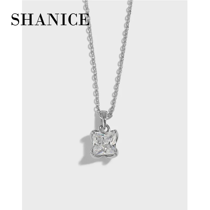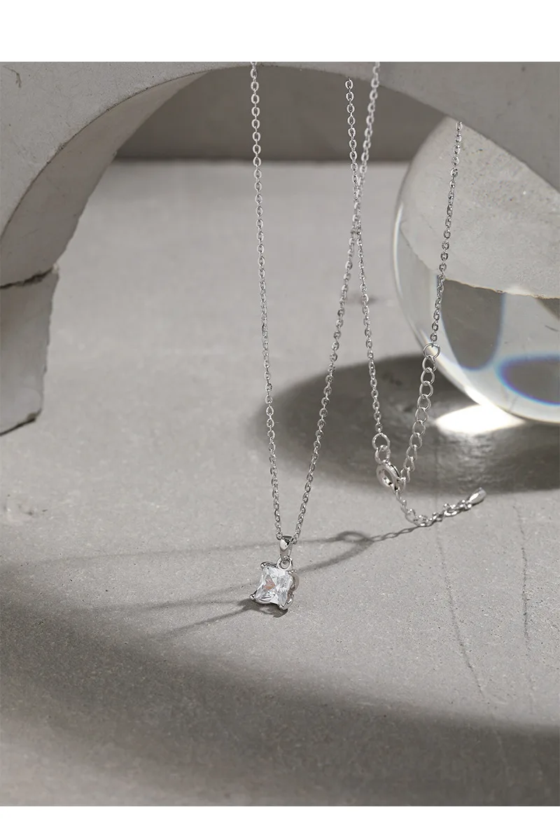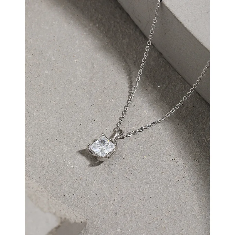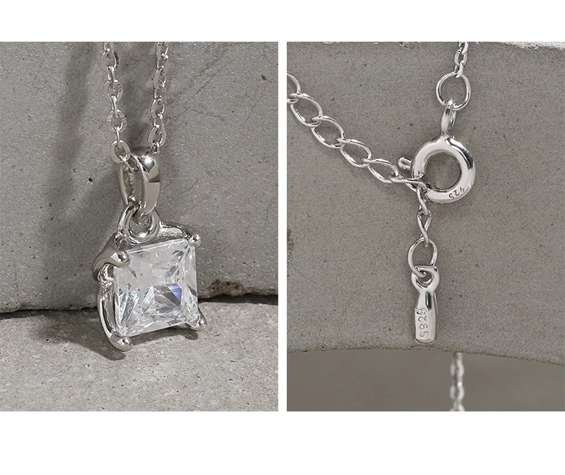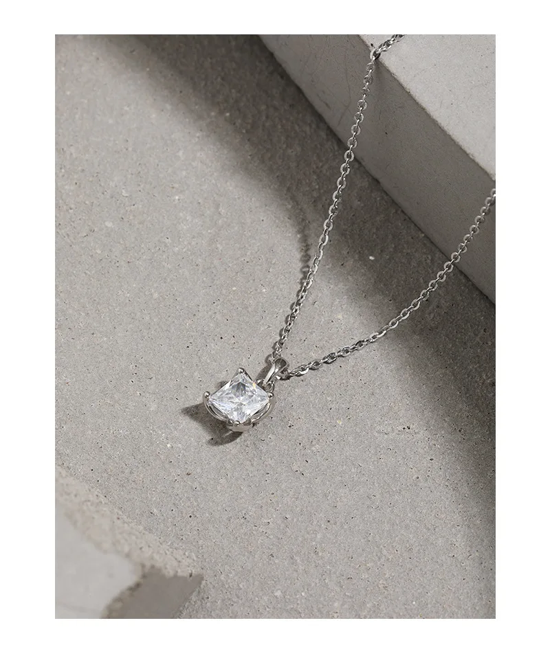 Женское ожерелье из серебра пробы с квадратным микро-инкрустированным цирконием