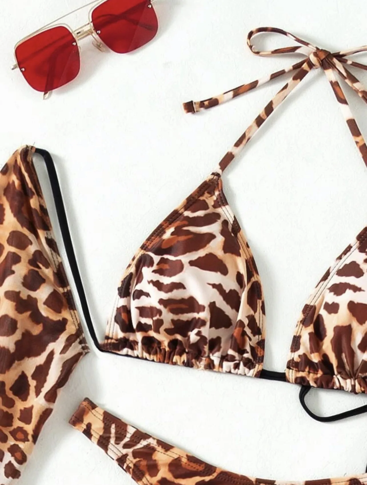 Сексуальное треугольное бикини 2021, женский купальник с леопардовы...