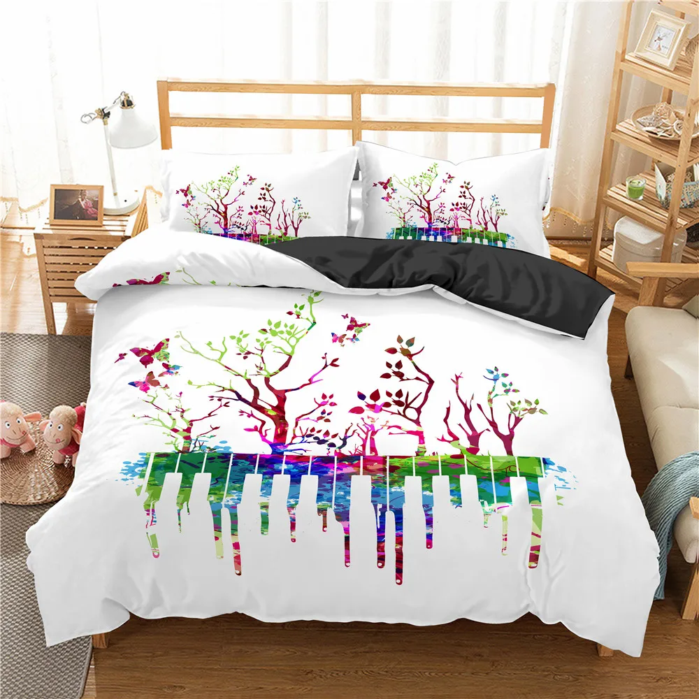 2021 Комплект постельного белья с клавиатурой Пианино музыкальные ноты пододеяльник Королевский размер постельное белье одеяло комплект постельного белья