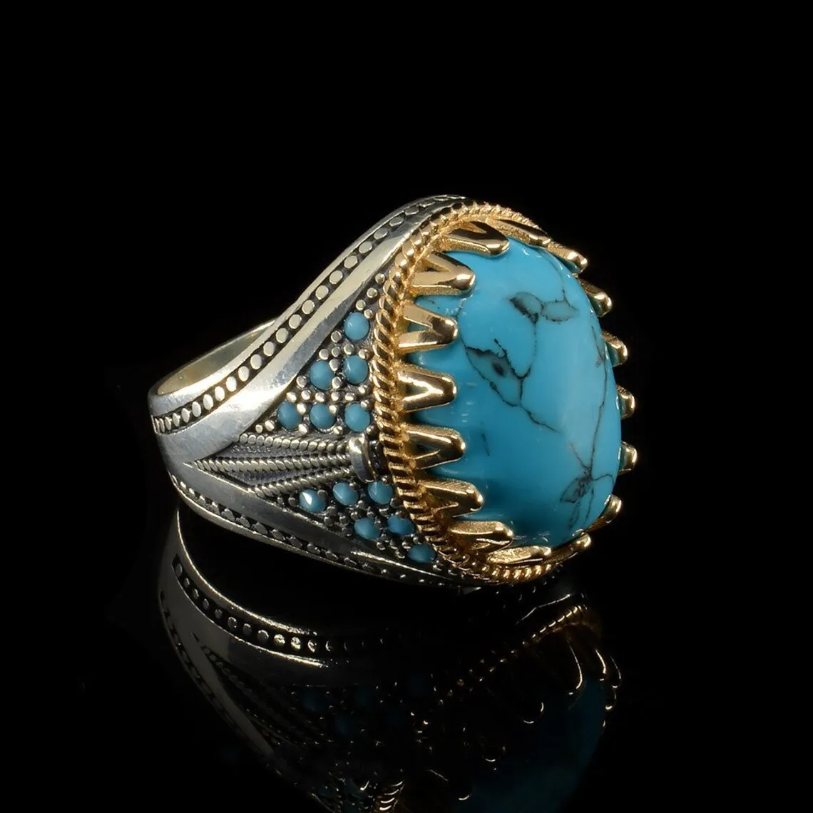 Турецкие кольца ручной работы с большим бирюзовым камнем для мужчин и женщин Ретро зеленый циркон панк религиозные кольца мусульманские украшения оптовая продажа
