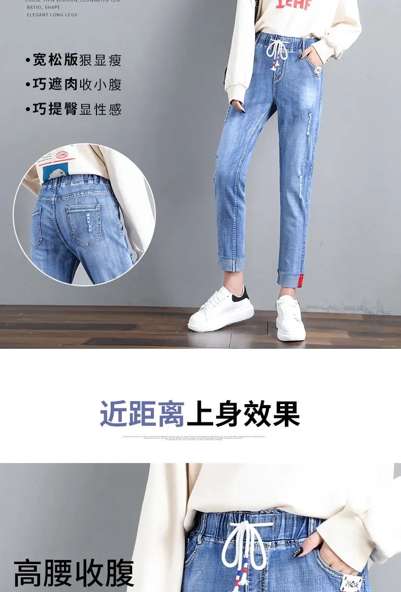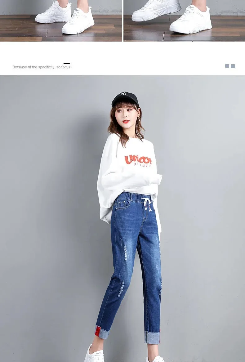 Уличная узкие женские джинсы Большие размеры штаны-карандаш стрейч ...