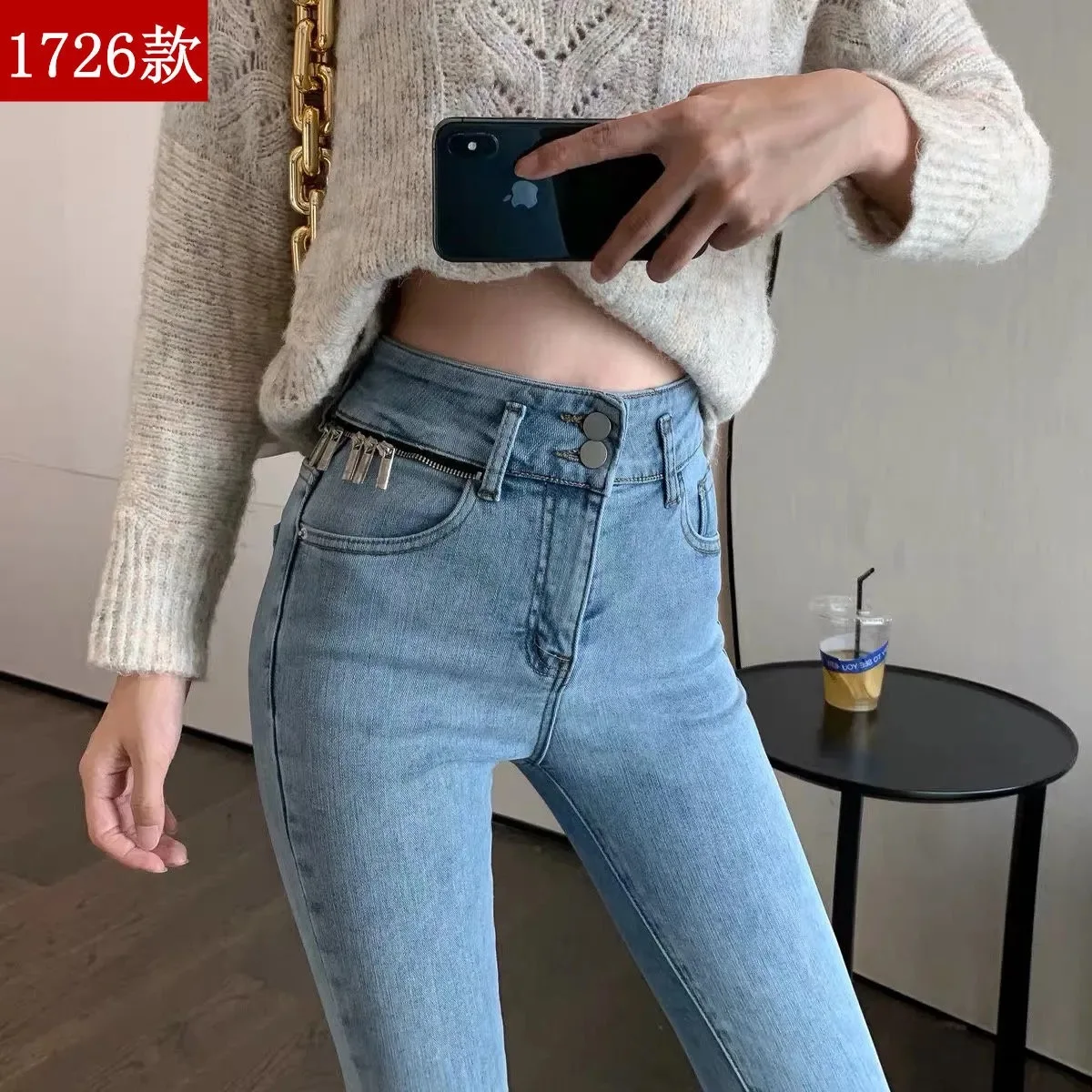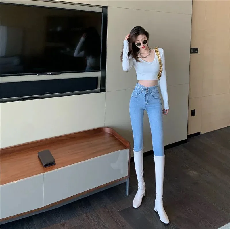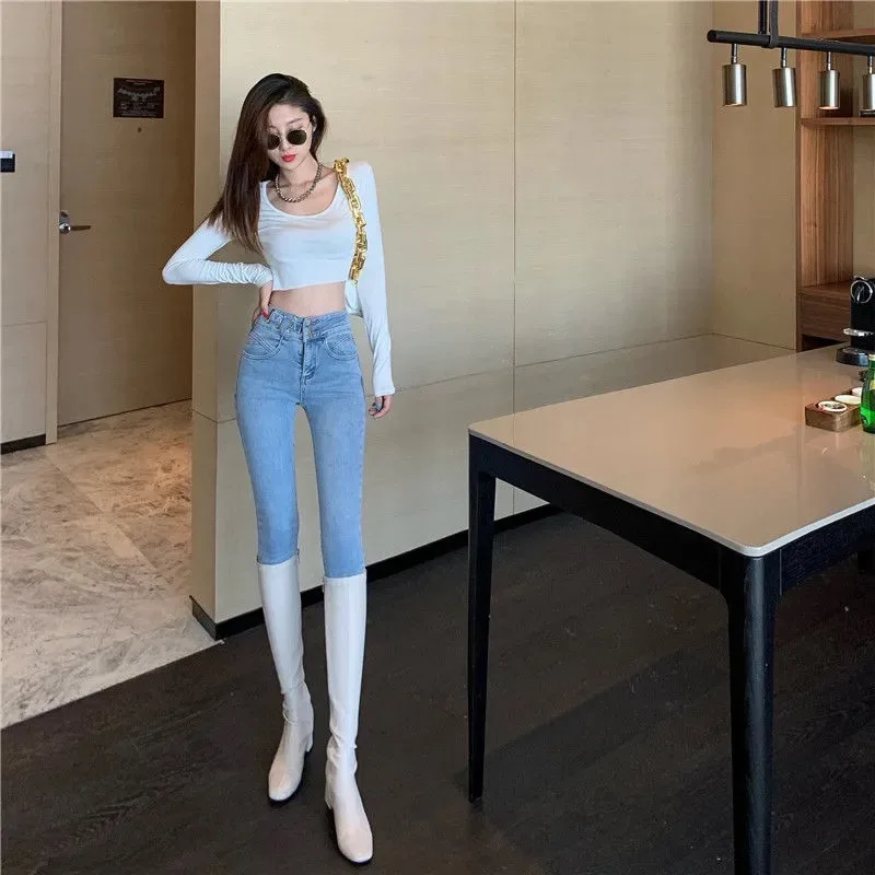 Осень 2022, джинсы, женские джинсы-карандаш, облегающие корейские с...