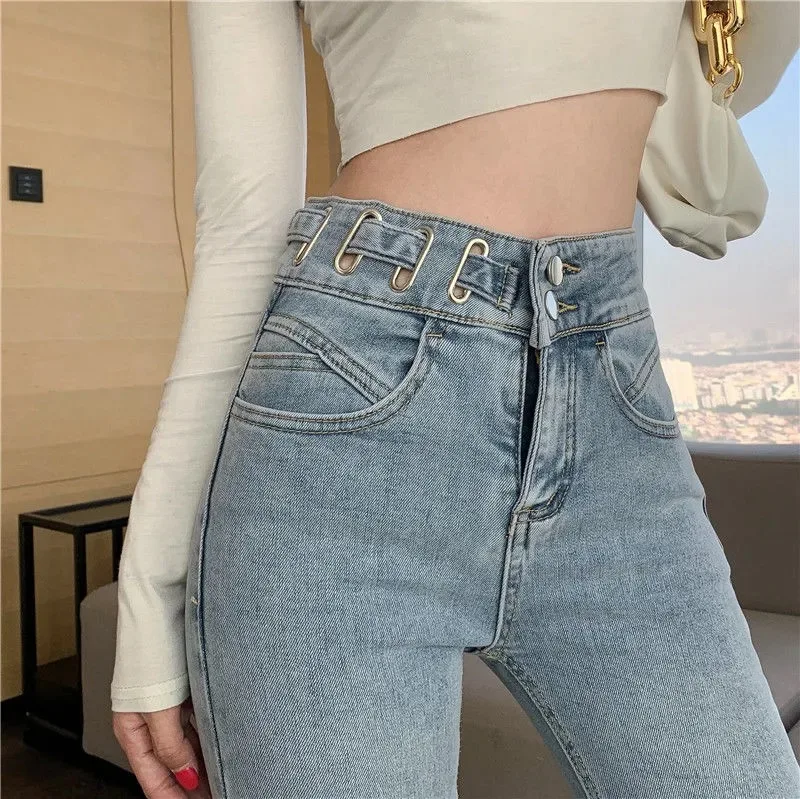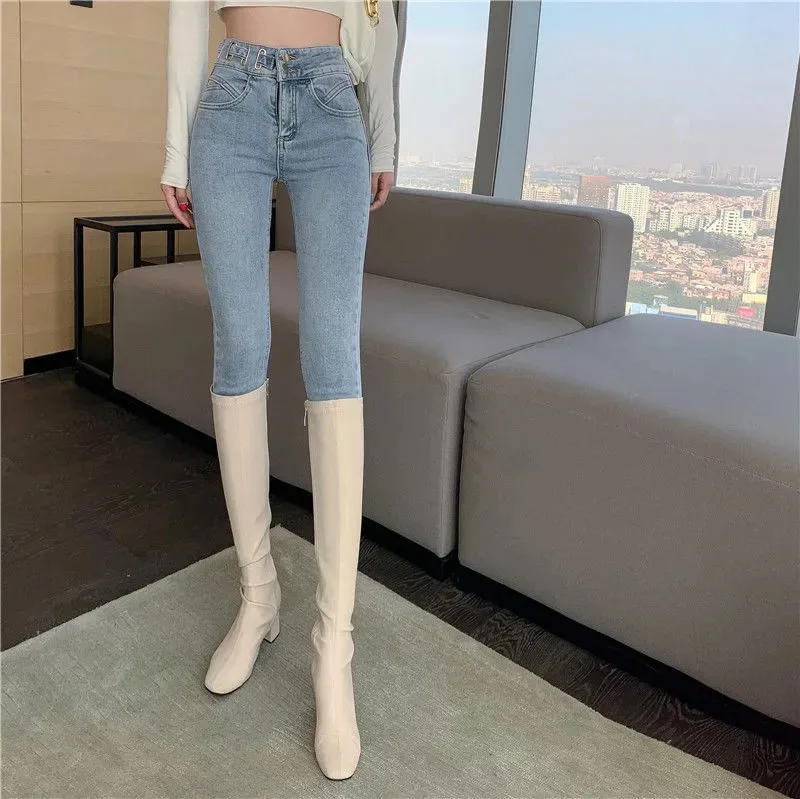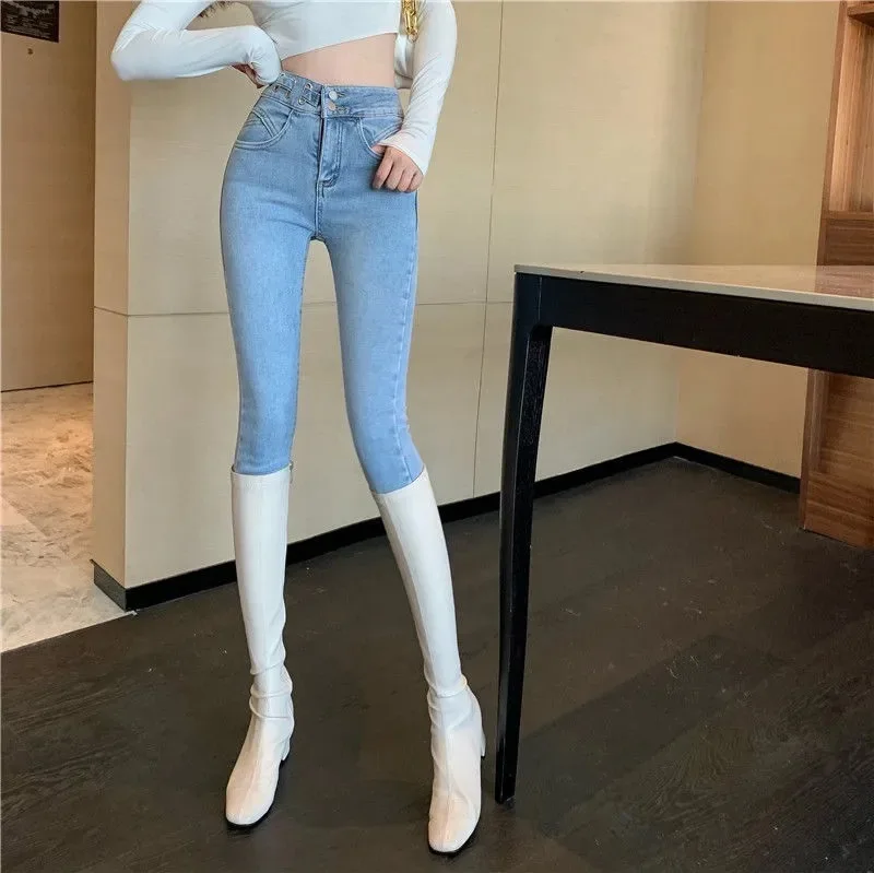 Женские узкие джинсы на пуговицах спереди, повседневные модные брюки с завышенной талией, осенние брюки, новинка весны 2022