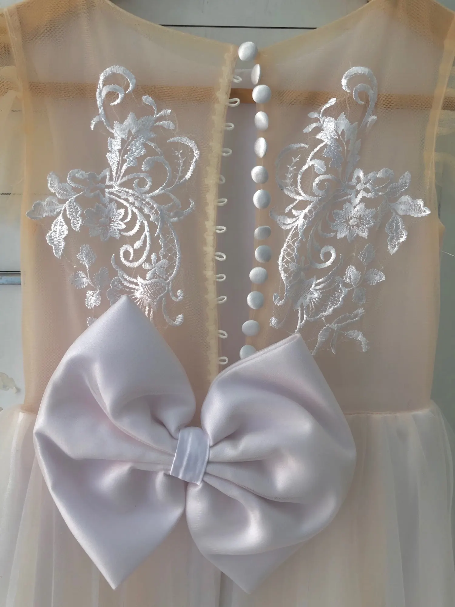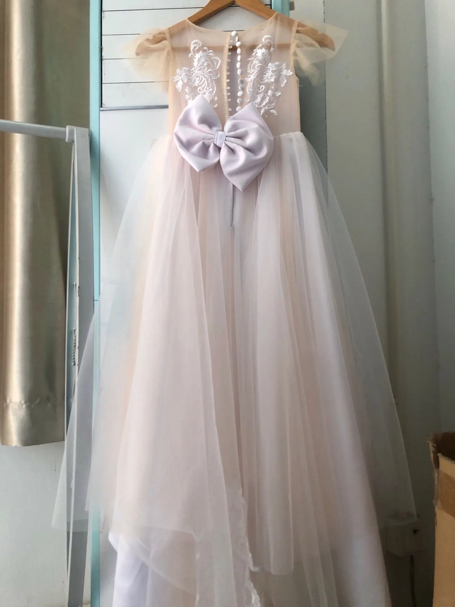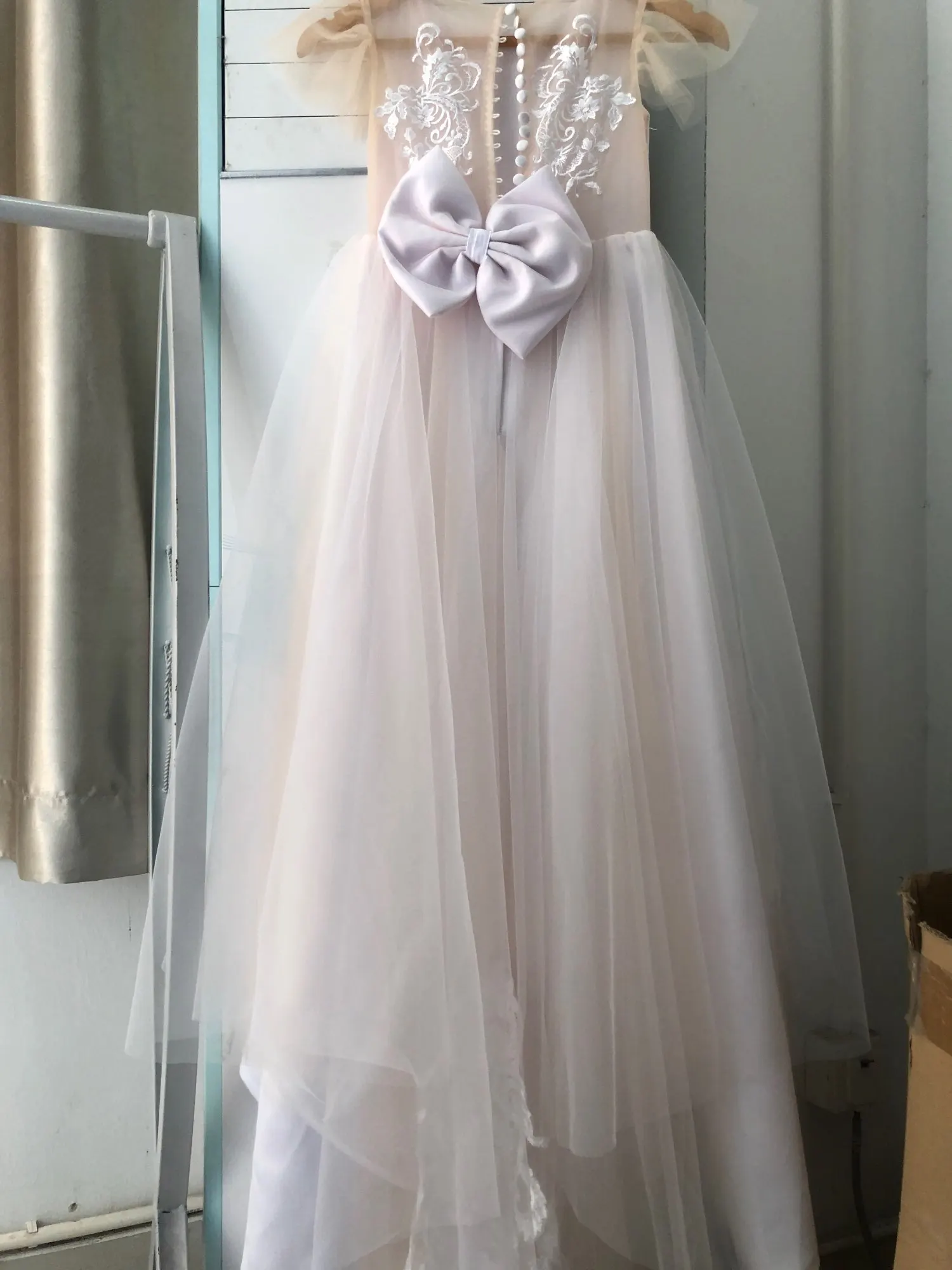 FATAPAESE платье для первого причастия, с бантом, со шлейфом, детское платье для свадебвечерние, бальное платье принцессы, платье для вечеринки, рождественское платье