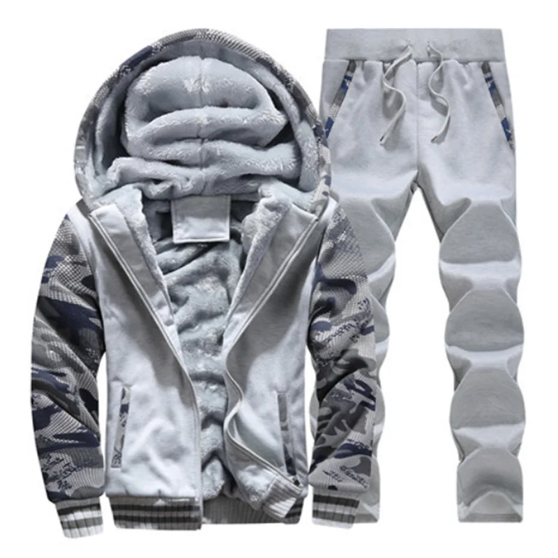 Мужской зимний Камуфляжный спортивный костюм, Повседневная теплая толстовка с капюшоном, толстая флисовая куртка и брюки, мужской спортивный костюм