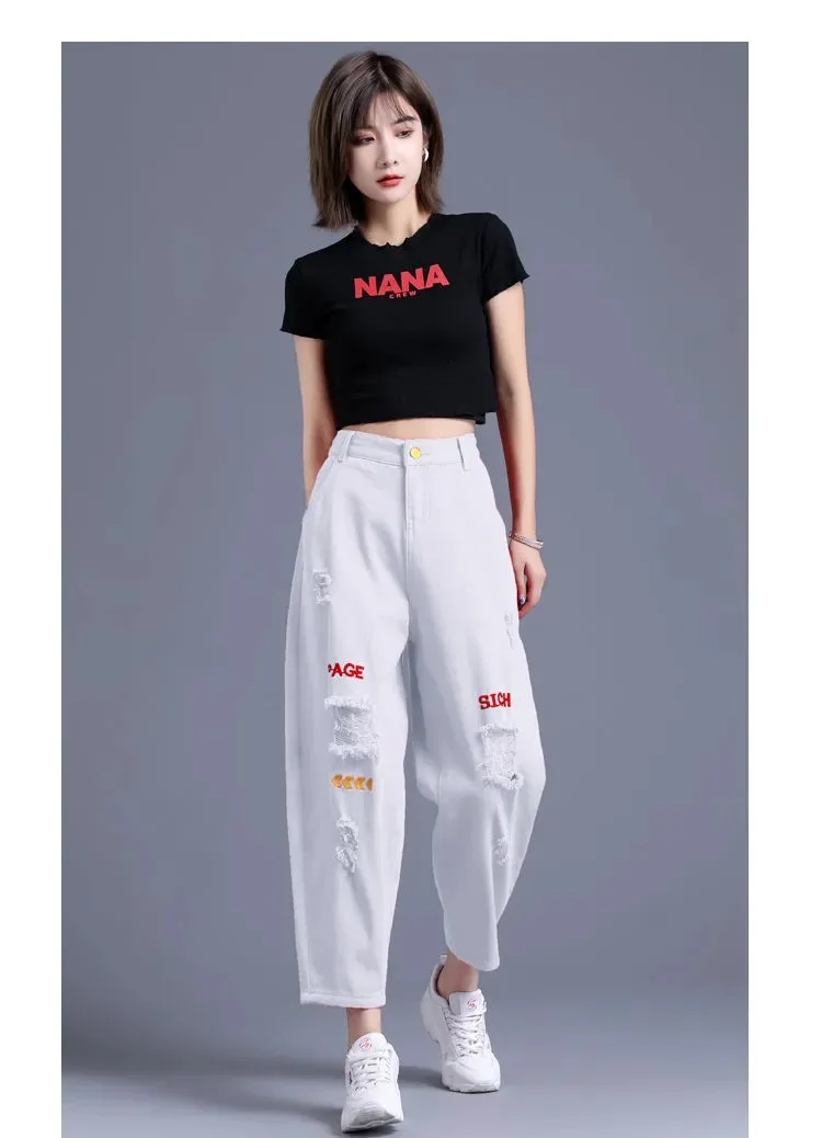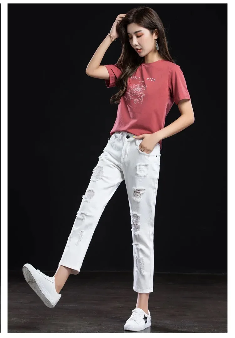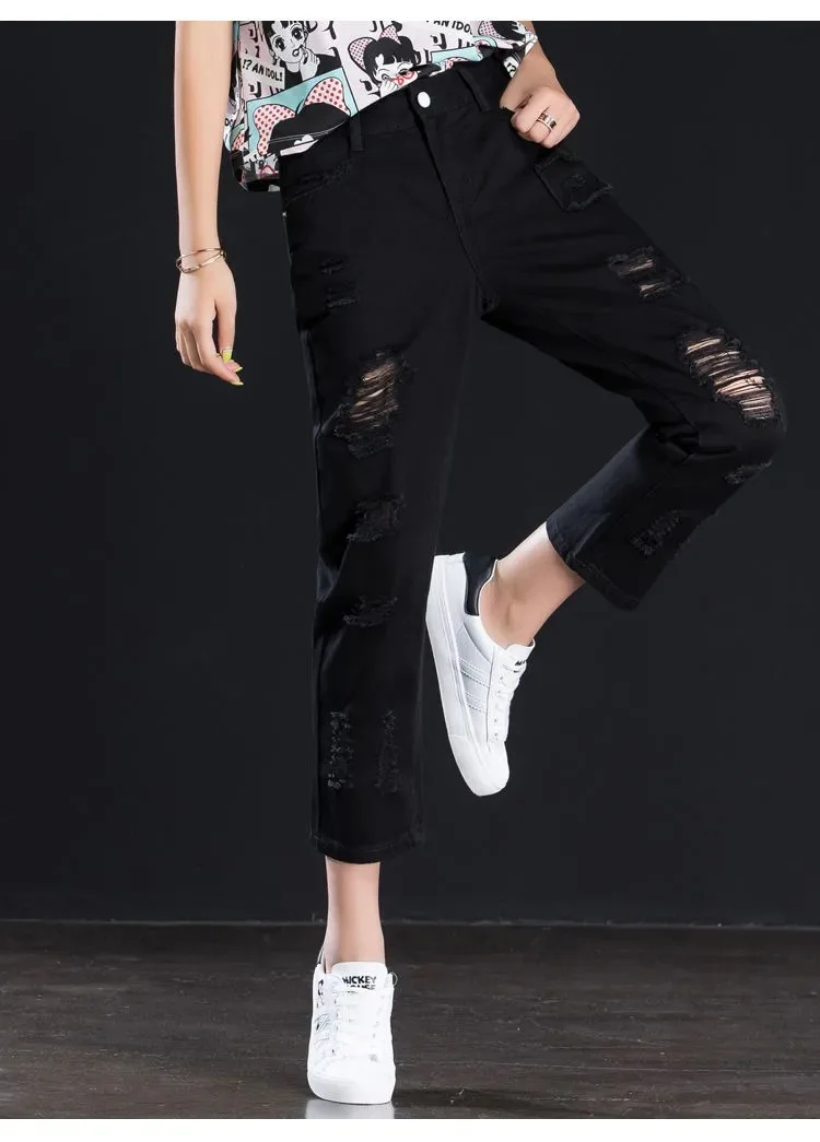 Джинсы женские рваные до щиколотки, с завышенной талией