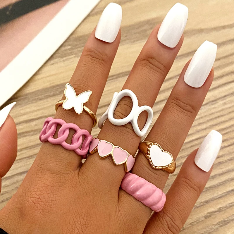 Цветное многослойное кольцо в форме сердца оптом Y2K кольцо с бусин...